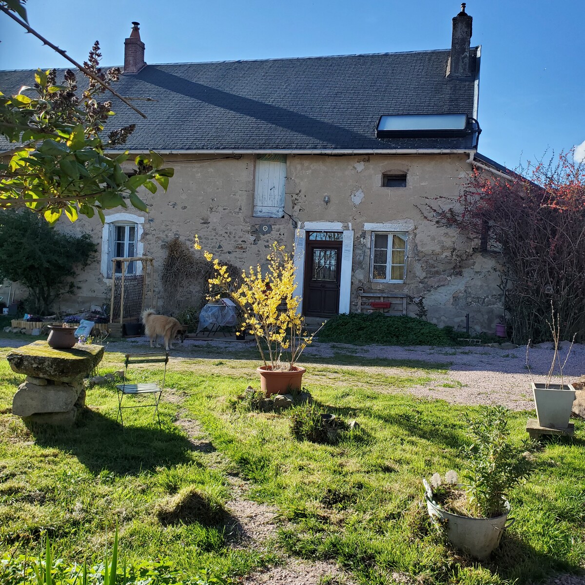 Esta herrería construida 'en piedras' con su forja adyacente respira historia. Alrededor de la casa se puede disfrutar de un hermoso jardín verde, con árboles sabios y rocas de granito. Tranquilo y libre, donde se unen las dos riquezas del Morvan, el agua y el bosque. A 50 metros del Etang d'Yonne, que lleva su agua a través de una cascada en el Yonne. A lo largo de la finca 'pasa' la Grande Randonnée, GR13. ¡Comience los paseos más hermosos desde la puerta principal!