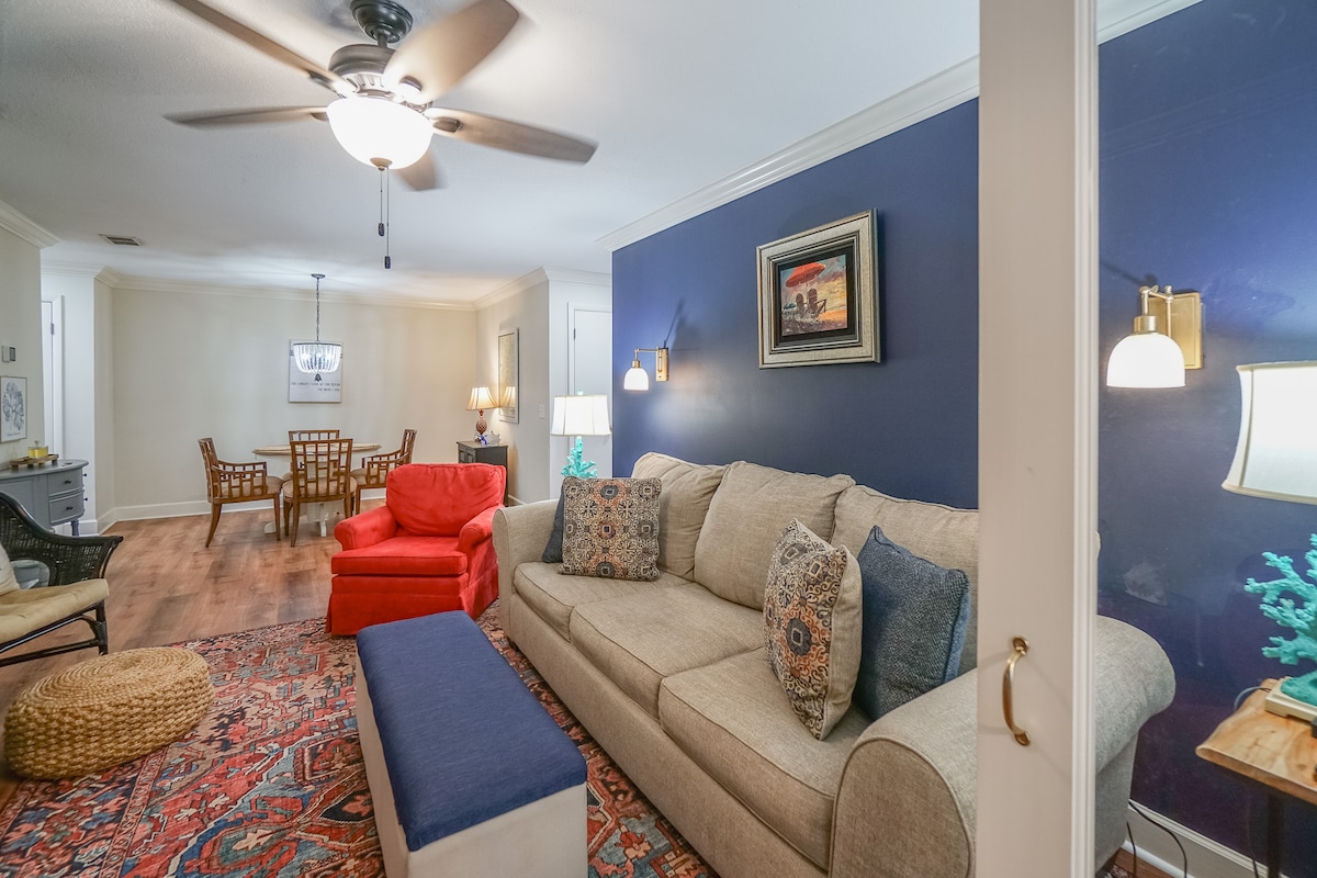 Has encontrado uno de los mejores apartamentos de alquiler vacacional en St. Simons Island. Cómodo y espacioso, 1.100 pies cuadrados, 2 dormitorios, 2 baños en el complejo cerrado de South Island, a solo dos millas de la playa y del área del muelle. Arriba. Perfecto para tan solo 1 huésped o hasta 6. Este apartamento se mantiene impecablemente limpio y fresco. Junto con la cama tamaño king en el dormitorio principal, el segundo dormitorio tiene un nuevo colchón tamaño queen con espuma viscoelástica. Piscina, gimnasio, wifi rápido, aparcamiento cerrado gratuito, lavandería. ¡Entra mucha luz natural!