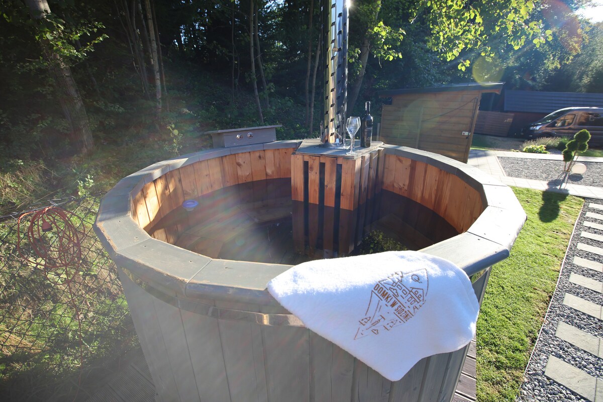 Tengo una acogedora casa de madera para ofrecer. La ventaja de la casa es el espacio, la terraza de piedra y el lugar para hacer hogueras y barbacoas. La casa única en el campo tiene un ambiente único y está decorada con el corazón, por lo que te sentirás como en casa. Abajo hay un pequeño salón con un cómodo sofá donde puedes relajarte, leer, ver la televisión (biblioteca disponible) En el salón hay un cofre de madera con una esterilla de yoga, correas, bloques y mantas.