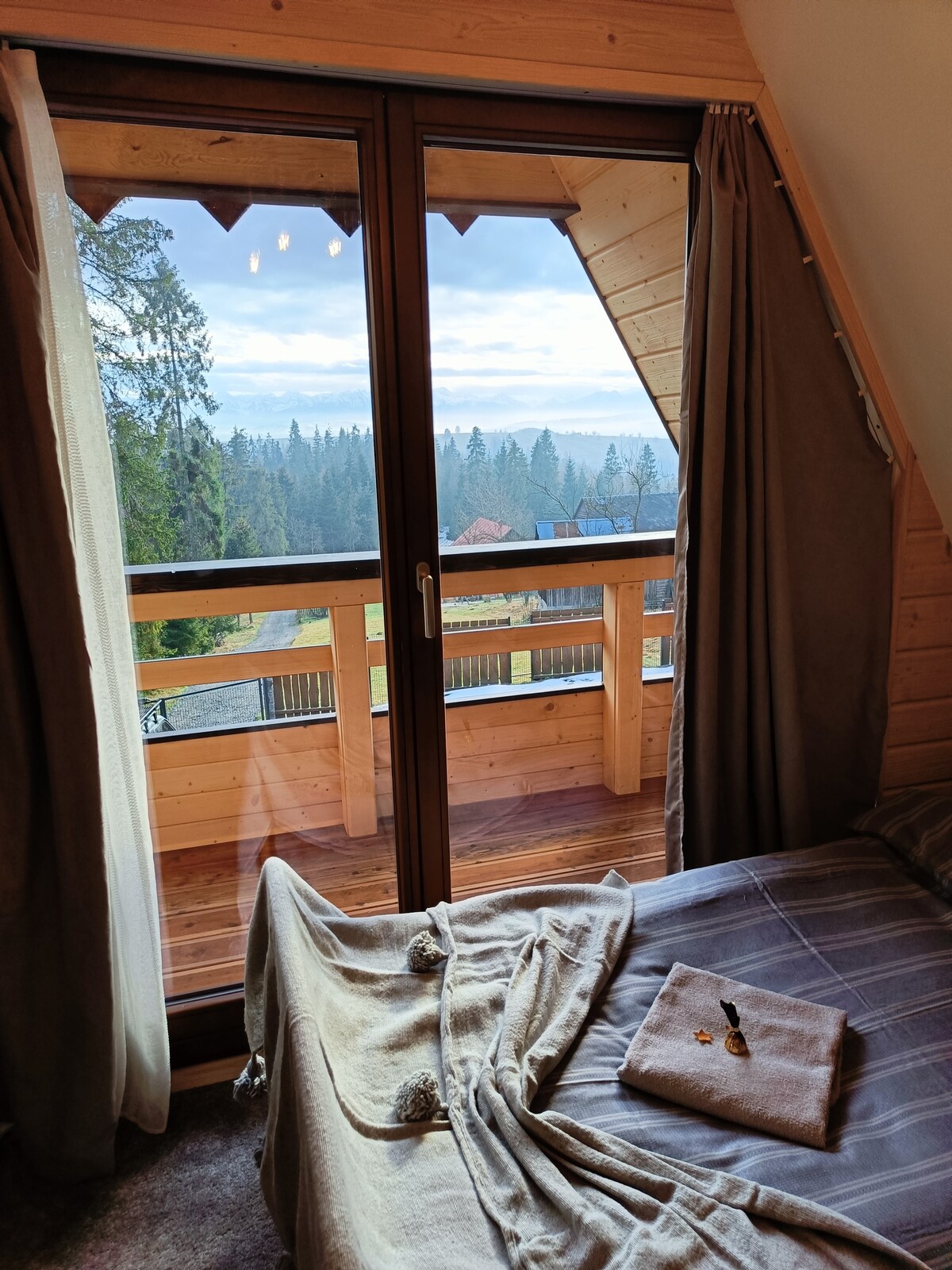 ¡Departamento de un nivel (100 m2) ubicado en una casa de madera a una altitud de 1050 sobre el nivel del mar! La entrada es independiente. El apartamento tiene una gran terraza, ofrecemos tumbonas. Las vistas de las montañas "entra" en la sala de estar:) Puedes estacionar tu auto en la propiedad. La sauna y la chimenea son gratuitas ,el jacuzzi 2x (jacuzzi de madera) pagó extra. Puedes llegar a Gubałówka a pie(1 hora) e ir por teleférico hasta Krupówki (4 minutos). Alrededores: rutas de senderismo y ciclismo, pistas de esquí.
