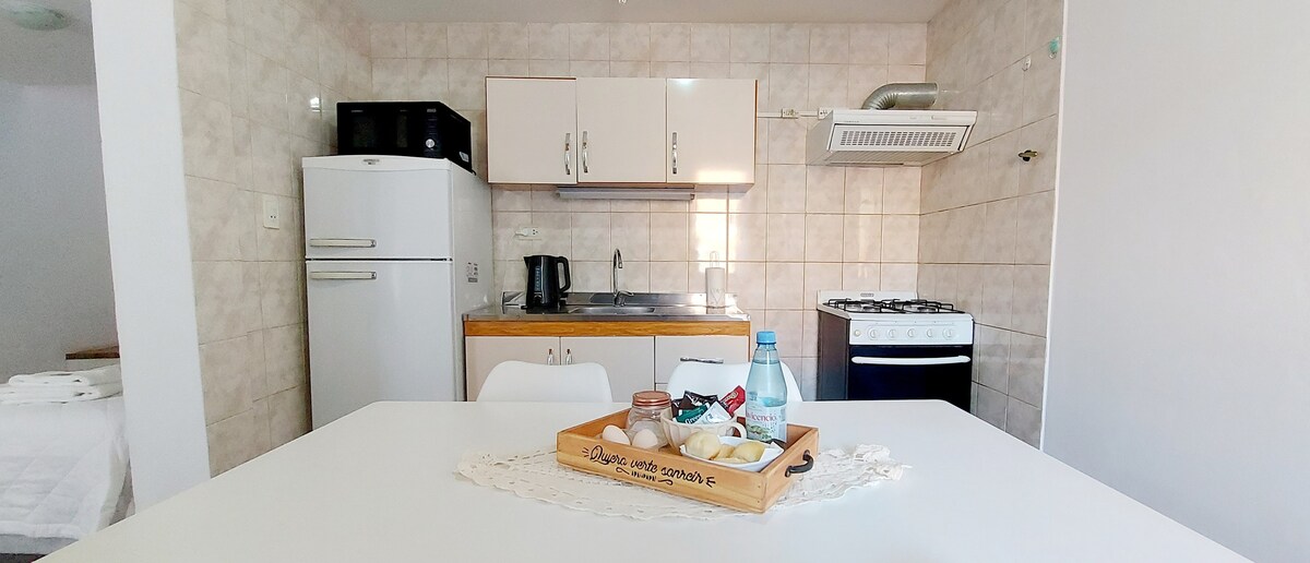 Amplío y confortable depto con capacidad hasta 4 huéspedes. Totalmente equipado con todo lo necesario para obtener una excelente estadía. Cuenta con TV , tv por cable y WIFI. El check out/check in es flexible. Large and comfortable apartment for up to 4 guests. Fully equipment with all necesary to feel like at home. Also has a tv with cable and wifi. Access is by a stairs. Flexible check in/check out.