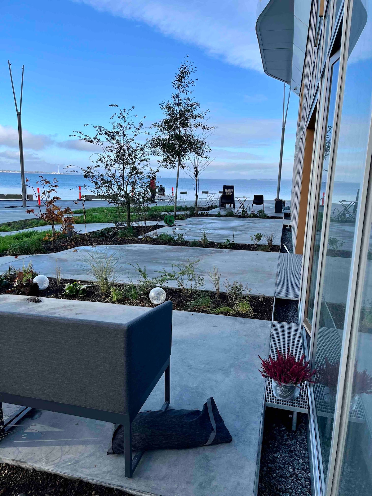 Oportunidad única de alojarse directamente en el muelle y a solo 3 metros de la orilla del agua en el icónico edificio de Bjarke Ingels en la recién construida Aarhus Ø. Wifi y plaza de aparcamiento privada incluidos. Cuando hace buen tiempo, el paseo marítimo está justo fuera y es muy concurrido. Agradable y bien aprovechado baño con altillo. Fantástica, orientada al sur, con vistas panorámicas de 180 grados al agua, al puerto y al horizonte de la ciudad. Pequeña sala de estar cuando es lo mejor: perfecta para parejas o viajeros de negocios. Cocina con hervidor eléctrico y nevera, no es posible cocinar.
