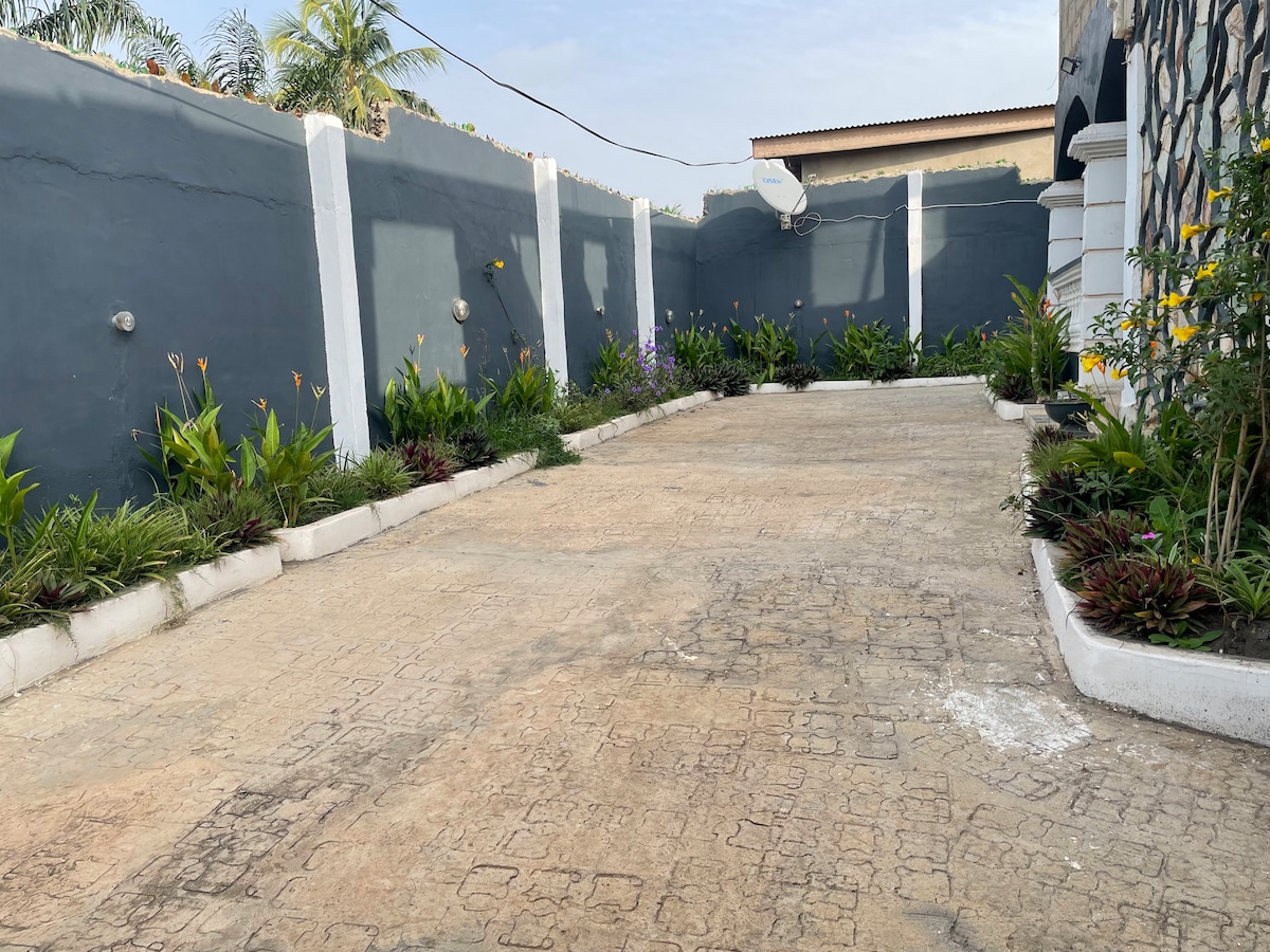 Forget your worries in this spacious and serene space.Located in a very popular and central location in Accra, Gbawe. We offer you extreme value for money with this ultra modern home where you can get away with friends and family for both work and relaxation. Only about 20min drive to West Hills Mall and about 30 min drive from the Airport. The road leading to our home is a bit buggy but the comfort that awaits you will make it worth it. Electric fence cable and 24/7 CCTV for extra security
