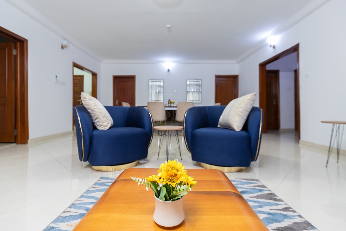 ¡Bienvenido a tu escapada a Acra! Descubre la mezcla perfecta de espacio, estilo y comodidad en este apartamento de 4 dormitorios situado a solo 5 minutos del centro comercial West Hills. Tanto si viajas en familia, con un grupo de amigos o con tu equipo de trabajo, este alojamiento ofrece todo lo que necesitas para una estancia inolvidable. Ubicado en un entorno seguro y moderno con suministro de energía ininterrumpido las 24 horas del día, los 7 días de la semana, puedes disfrutar de la comodidad sin preocuparte por los cortes de energía, sin el ruido del generador, solo tranquilidad y comodidad.