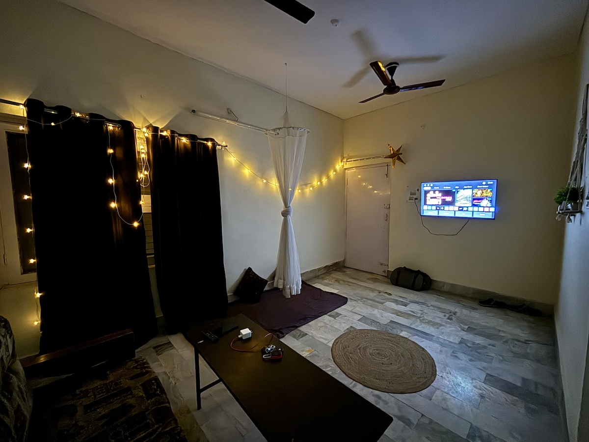 Welcome to La Casa Viva — a boutique stay with vibrant Mexican-inspired design, set in the heart of Gomti Nagar. Perfect for families, friends, or couples, this 1st-floor Airbnb in an independent home (with the ground floor vacant) offers a private home cinema + bathtub + an extra-long living room with plush seating + a spacious balcony with lively plants. Comfortably sleeps 3. True to its name, La Casa Viva — ‘The Lively Home’ — is crafted to make your stay bright, joyful, and memorable