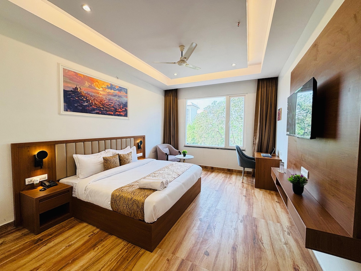 Disfruta de la comodidad de un hotel boutique en La Casa Residency, el moderno refugio de Lucknow diseñado tanto para viajeros de negocios como de placer. Nuestra habitación Executive ofrece espacio adicional, interiores elegantes y una ubicación tranquila en una esquina, perfecta para quienes valoran el estilo y la privacidad. Situado en el corazón de la ciudad, disfruta de un fácil acceso a las tiendas y restaurantes populares desde este encantador lugar para alojarse. Los huéspedes también pueden disfrutar de la cocina de La Casa Kitchen y de un fácil acceso a las principales atracciones de Gomti Nagar.