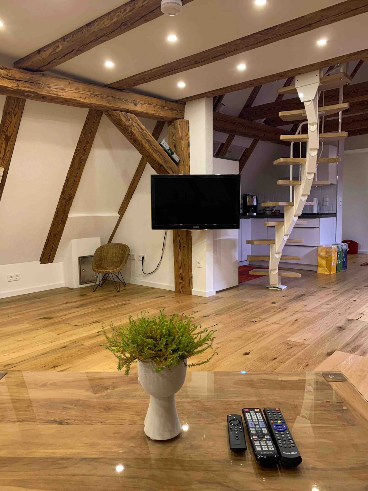 Die Wohnung liegt zentral – Restaurants, Cafés und Einkaufsmöglichkeiten sind bequem zu Fuß erreichbar. Die hochwertig sanierte Altbauwohnung bietet zwei Schlafzimmer und ein Schlafsofa für bis zu 6 Personen. Highlights sind die neue Designerküche, ein privater Saunaraum, ein Fitnessraum, WLAN, Flatscreen-TVs und eine Waschmaschine. Umgebung: Bahnhof/ZOB 400 m, Parkhaus Marktplatz 60 m. Flexibler Check-in ab 15:00 Uhr per Schlüsselbox.