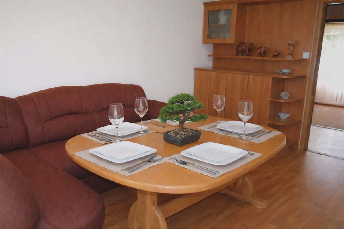 Un lugar perfecto para alojarse con la familia. Ubicación cerca de la calle peatonal de Krynica, también cerca de la estación de tren desde donde se puede ir y visitar otros pueblos pintorescos en los alrededores de Krynica. El apartamento es luminoso, con un dormitorio separado y una sala de estar desde la que se puede salir a la terraza.
