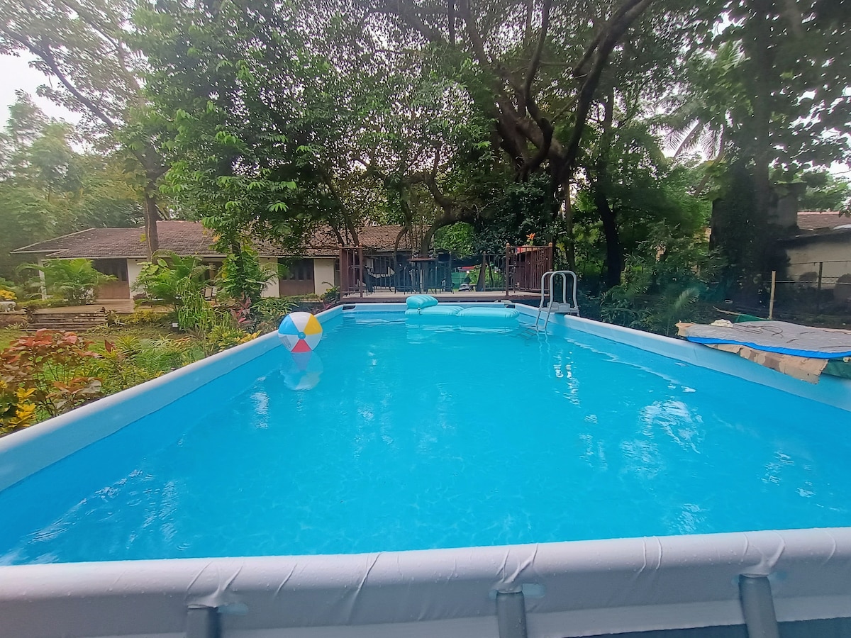 Welcome to Villa Aarka nestled in the quaint countryside of Nagaon, Alibaug. Located barely 5 kms , 10 minutes away from the beautiful Nagaon beach, this pet friendly villa is perfect for a long weekend or work-from-villa break. Equipped with 3 bedrooms, and private garden and refreshing pool. Access is very easy from Mumbai via Ro-ro, MCM via a self drive car. Taxis also available on pre booking. We are Swiggy zomato friendly , and our caretaker also provides food at an addional cost.