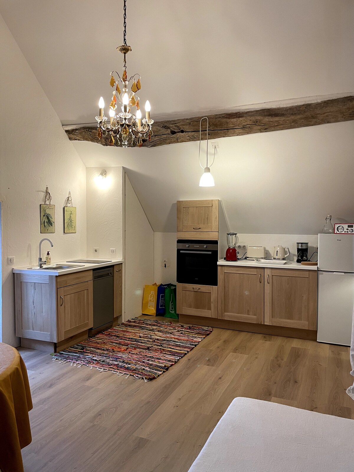 Encantador apartamento independiente Bienvenido a nuestro acogedor apartamento totalmente equipado, situado al final de nuestra gran casa. Disfrutará de una sala de estar con sofá cama, un amplio dormitorio, una cocina funcional y un baño con ducha. Ideal para una estancia tranquila, en plena naturaleza y a 10 minutos de los servicios y autopistas Si lo desea, puede disfrutar de los muebles de jardín y una mesa y sillas .