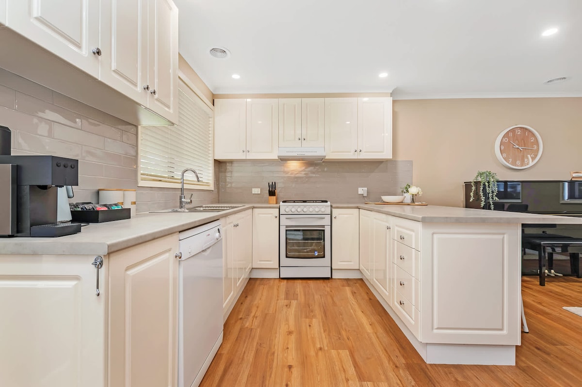 Escápate al paraíso definitivo del entretenimiento en esta casa de diversión totalmente renovada: 4 televisores, spa, sauna, mesa de billar de tamaño completo, mesa de ping-pong, mesa de póquer, 3 fogatas, comedor al aire libre, barbacoa, «cueva de hombres», cocina de chef, jardines, vistas y conoce a los lugareños como cacatúas, canguros y conejos en los jardines. 4 camas con 3 divididas en camas tamaño king: ¡capacidad para 7 personas en lujo total! Despiértate con el canto de los pájaros y los canguros pastando justo fuera de tu ventana.