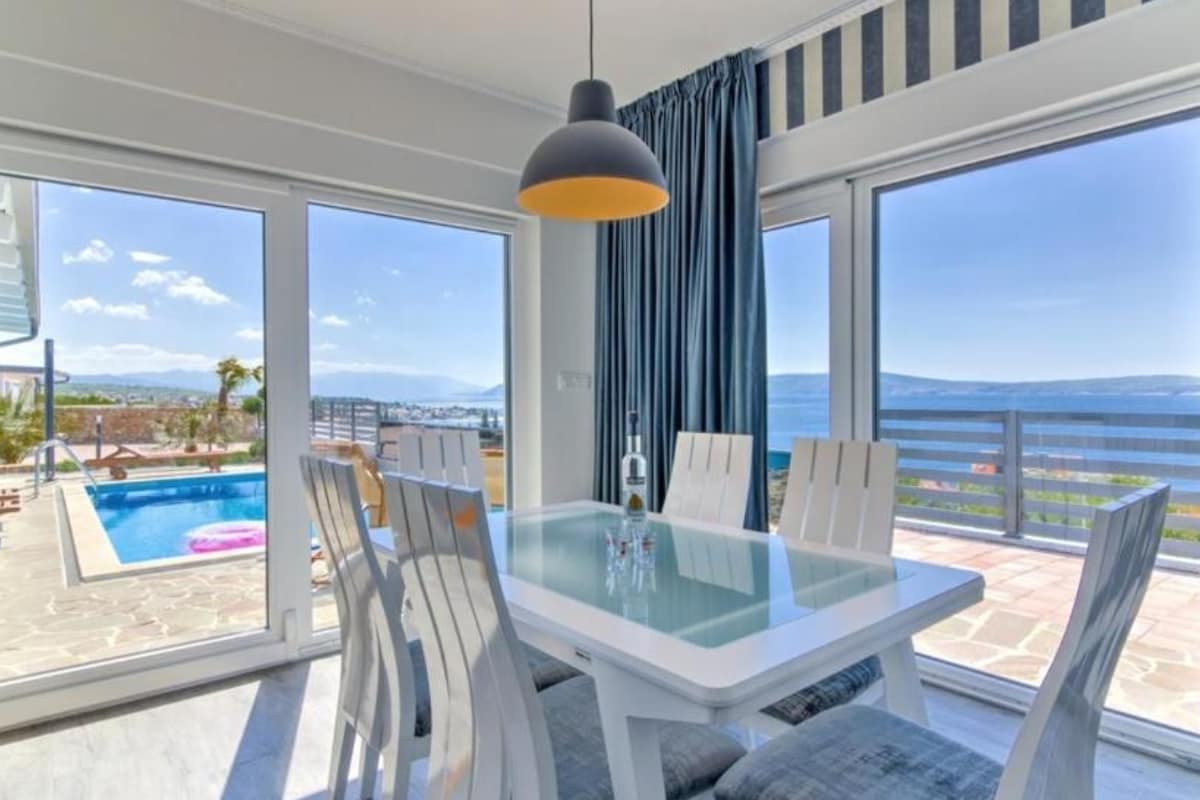 Unique beach house with a splendid seaview, infinity pool( heated) and hot tub with sea view in the village Jadranovo, quiet and beautiful part of Crikvenica Riviera. In the perfect location, just a few stairs away from the beach, 30min bike ride(bikes included) or an even quicker car ride from center of Crikvenica. Enjoy private atmosphere few stairs from sea and short drive from city noise.