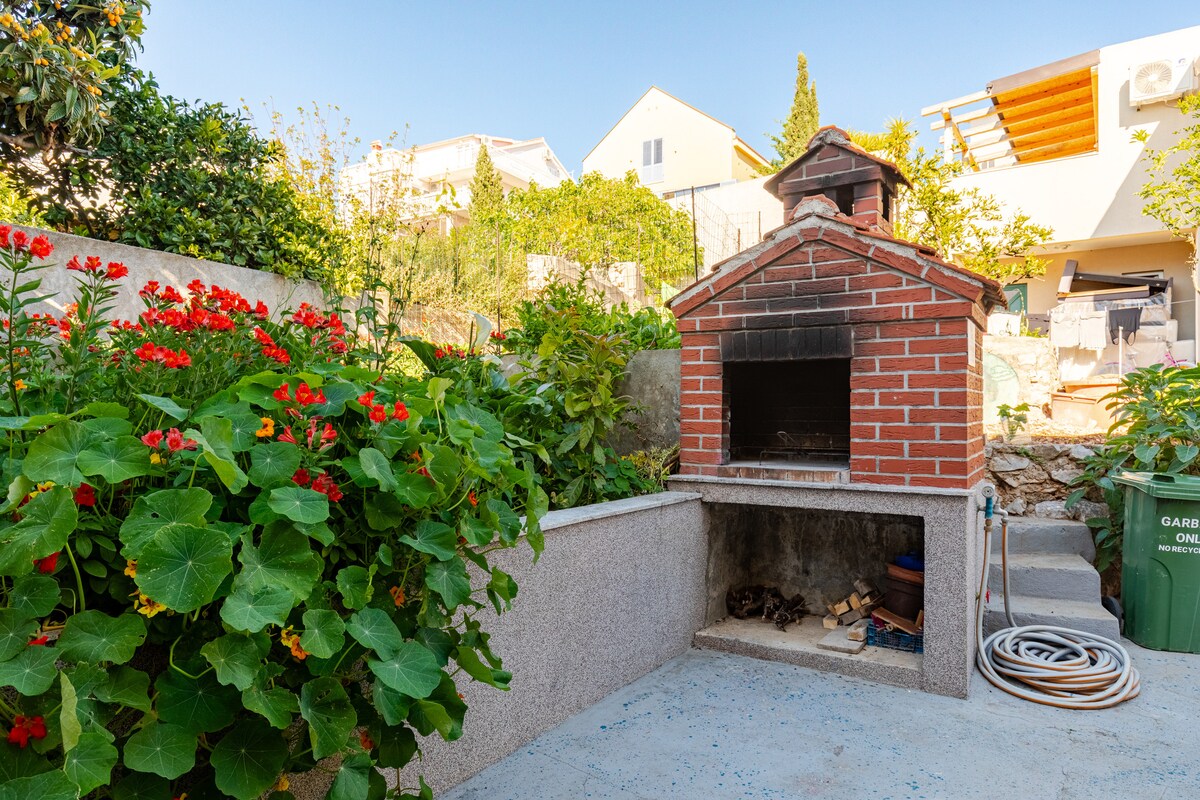 El apartamento estudio, situado en la planta superior de la casa, está diseñado como un espacio abierto e incluye una cocina con sala de estar y un dormitorio, un baño y un balcón con vistas al mar. La casa está situada en una zona tranquila de la ciudad de Hvar, cerca del monasterio franciscano, y tiene un gran jardín y mucha vegetación. La primera playa está a 50 metros de la casa y el centro de la ciudad está a 5 minutos a pie a lo largo del mar.