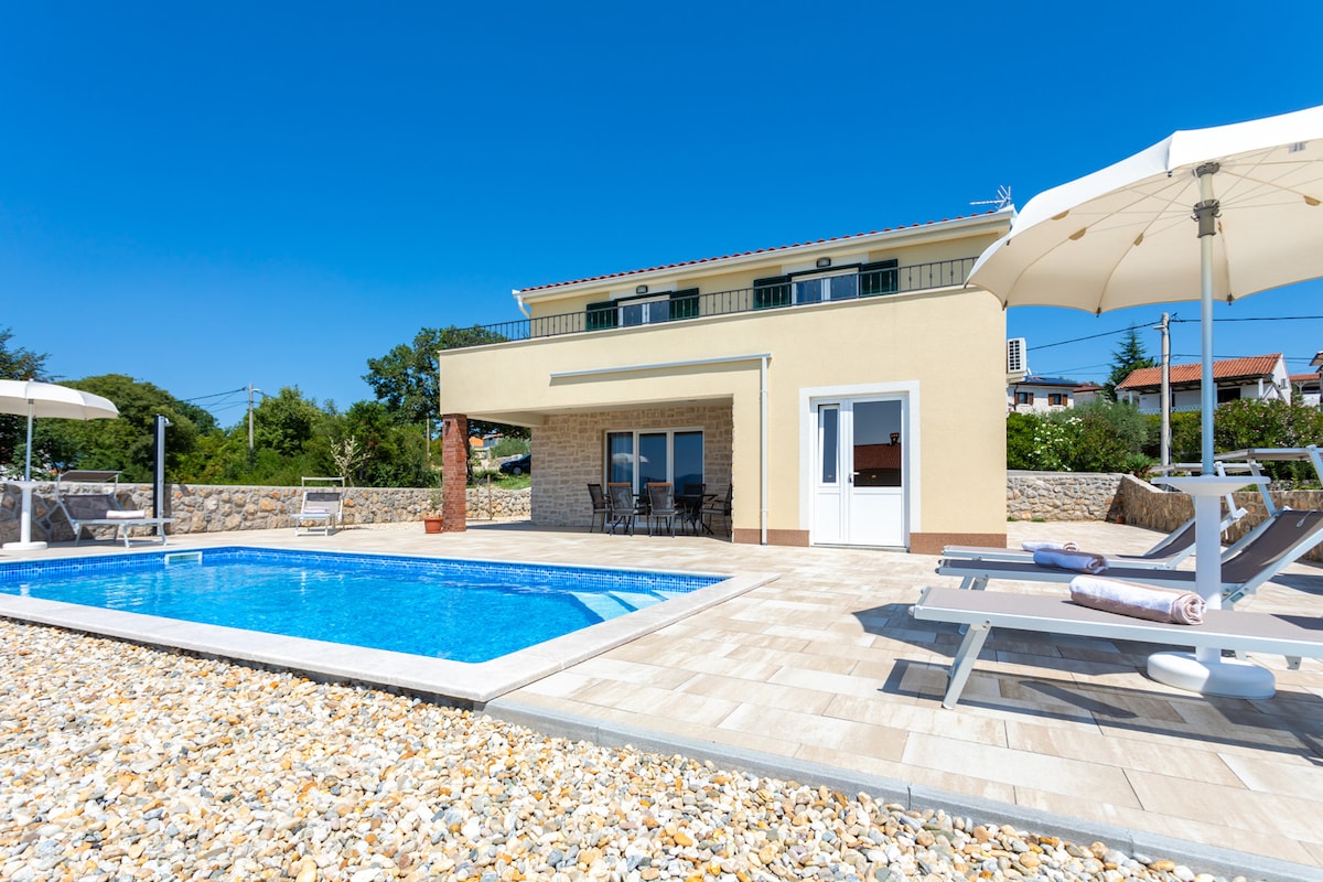 La exquisita Villa Harmony se encuentra en la isla de Krk. Tiene una impresionante vista panorámica. El punto focal de la villa es la piscina al aire libre de 50 m2 con vistas al olivar. También hay una cocina de verano y una zona de parrilla junto con una gran mesa y sillas. En la planta baja hay una amplia sala de estar y una cocina y un dormitorio con baño privado. Tres dormitorios en suite están situados en la primera planta. La villa también cuenta con un sótano preparado para el entretenimiento de niños y adultos.