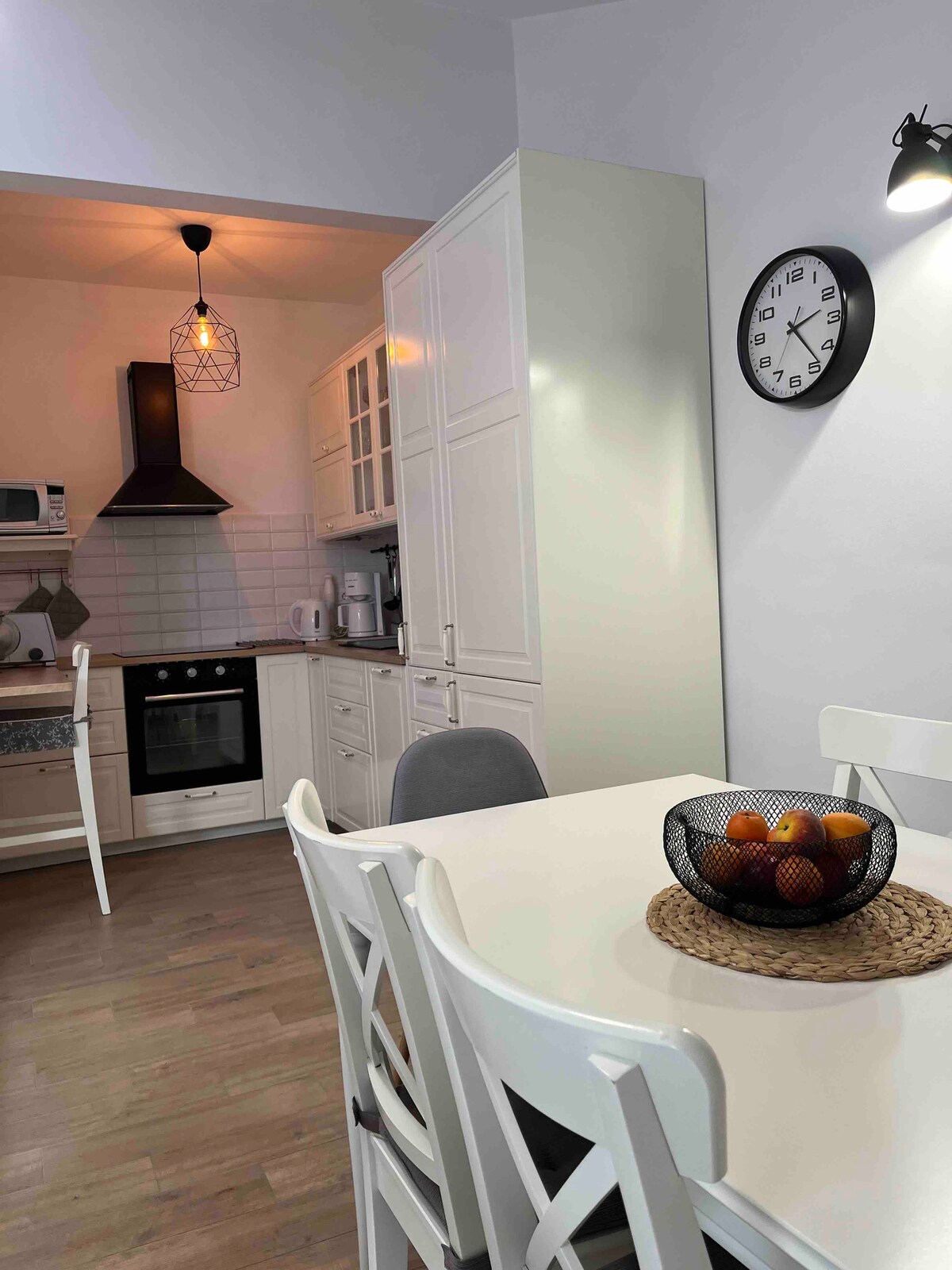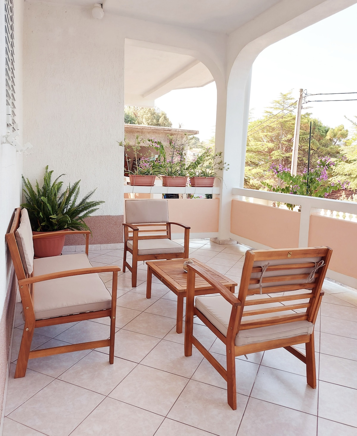 Está ubicado en la planta baja de una casa de un solo piso, tiene 50 metros cuadrados, un dormitorio, una sala de estar separada donde hay un sofá cama en esquina para 2 personas. con vistas al sur. Tiene una terraza cubierta y un gran jardín de 2000 qm , donde hay un estacionamiento ,huerto y olivar. Es especialmente adecuado para familias que tienen niños pequeños o mascotas. A 20 metros de la casa hay una pequeña tienda con productos horneados frescos.
