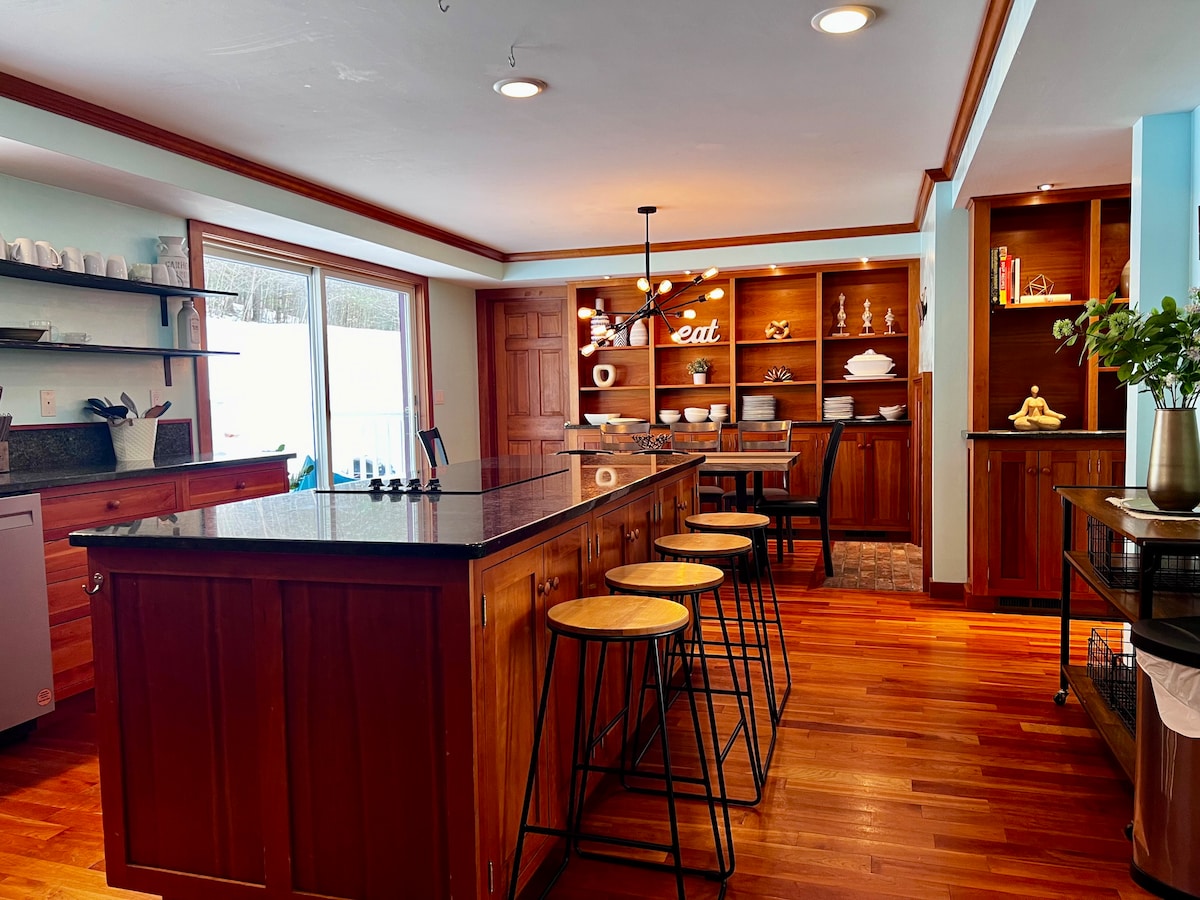 Ubicado en un precioso jardín de 3 acres, nuestro Airbnb está a 1/4 de milla del lago y a 23 minutos de Dartmouth College o de la pista de esquí. Este apartamento privado y cómodo está construido en nuestra casa con su propia entrada, suelos de madera, calefacción radiante, grandes ventanales, cocina completa y baño, y preciosas vistas al jardín. El loft tiene 3 generosas áreas para dormir semiprivadas con 2 camas queen y 1 individual. Hay un futón tamaño queen abajo. El alquiler incluye pase a la zona de recreo y playa de Treasure Island: 1,5 millas.