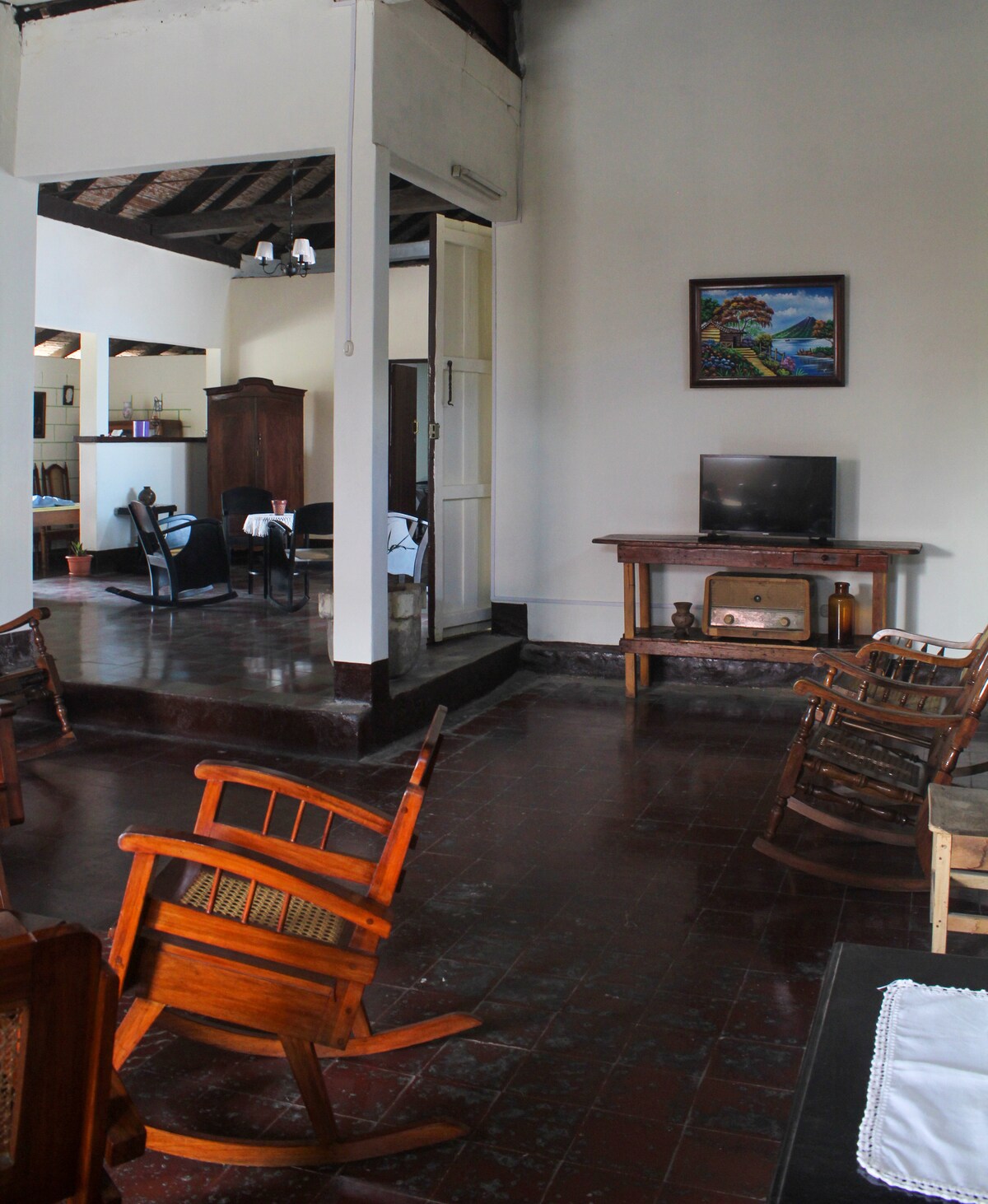 ¡Te damos la bienvenida a tu tranquilo retiro! Ubicado en 2.2 acres de una propiedad rural. Esta casa cuenta con una terraza privada que cuenta con impresionantes vistas panorámicas del volcán Mombacho, creando un telón de fondo inolvidable para tu estancia. La propiedad tiene un promedio de 15 grados más fría que la ciudad de Granada propiamente dicha con los vientos que abarcan la propiedad durante todo el día. Ubicado a solo 3 kilómetros al sur de Treehouse Party y está justo al lado de la autopista Panamericana con mucho estacionamiento en el lugar.