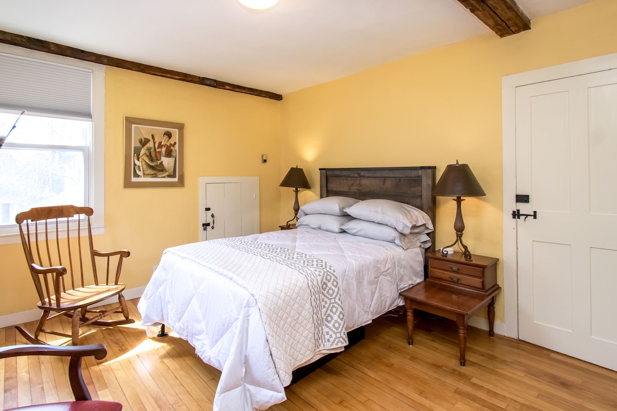 ¡Disfruta de esta suite privada de dos pisos de 1 dormitorio y 1 baño en una casa vintage muy bien reformada! Con una cocina completa, una acogedora sala de estar y un dormitorio y baño en la planta superior, es perfecto para individuos, parejas o familias pequeñas. Relájate dentro en un espacio tranquilo, camina hasta Mount Holyoke College y Village Commons o explora los alrededores de Amherst y Northampton (a menos de 20 minutos). ¡La llegada autónoma sin contacto y el cómodo estacionamiento hacen que tu estancia sea fácil!