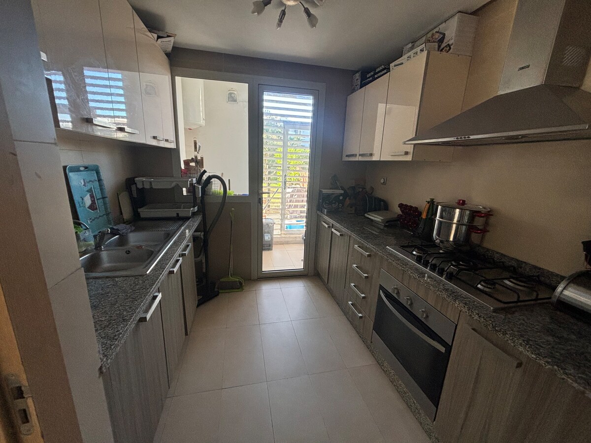 Apartamento con puertas de seguridad 24/24, piscina, gimnasio y a solo 3 minutos a pie de la playa. Ubicación perfecta en Dar Bouazza, cerca de tiendas, cafetería, playa privada... Acogedor apartamento de 2 dormitorios en el segundo piso con cocina abierta en la sala de estar y una increíble vista al mar. También puedes disfrutar de una pequeña chimenea para calentar en los días más fríos. Hay un baño con ducha y lavadora y otro inodoro separado. Autoregistro con instrucciones. Ideal para vacaciones con familiares o amigos.