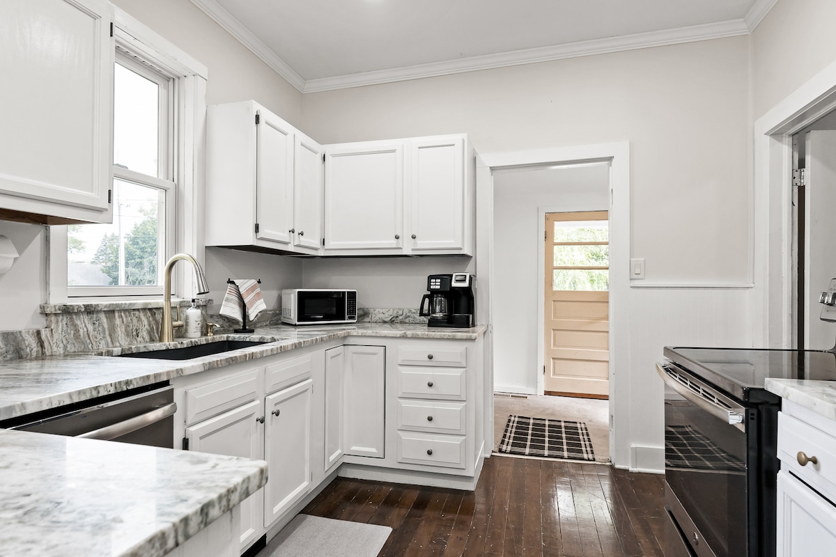 ¡Te doy la bienvenida a mi casa bellamente renovada! Ambos baños se han reformado por completo y ahora cuentan con pisos pulidos y duchas de baldosas. Se actualizaron todas las lámparas y ventiladores de la casa. La cocina tiene un maravilloso lavado de cara con nuevas encimeras de cuarzo y pisos de tablones de vinilo. ¡El patio trasero cuenta con una nueva parrilla Weber! ¡Ven a disfrutar de un fuego en la chimenea y asa malvaviscos con la leña proporcionada y todo el equipo! ¡Estás a pocos pasos del centro de la ciudad y a poca distancia en coche de la playa!