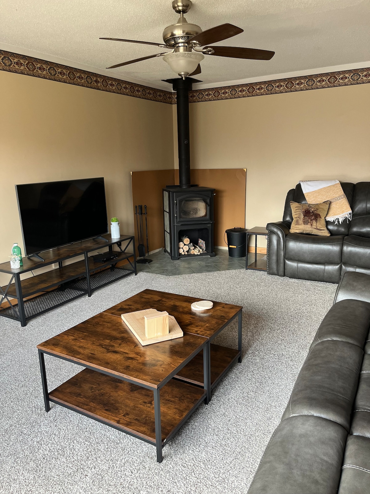 - Parada perfecta a medio camino entre Winnipeg y Calgary, a 15 minutos al oeste de Moose Jaw, en la autopista Transcanadiense (n.º 1), suite en el sótano totalmente amueblada de 2 dormitorios, tranquila, segura y privada. - No se permite fumar. - Baño privado. - Sala de estar con biblioteca y TV vía satélite de 54 pulgadas. - Zona de comedor/escritorio. - Mininevera/microondas/Keurig/hervidor/horno tostador. - Wifi. - Sin fregadero/cocina. - Aire acondicionado. - Muchos calentadores. - No se admiten mascotas. - Desinfectado después de cada estancia. - Desayuno continental: café/zumo/té/cereales/avena/leche/crema/productos para hornear. *Si no te gusta lo fresco, no reserves.