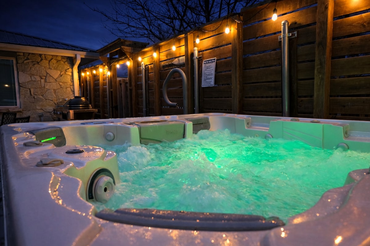 Esta acogedora cabaña ofrece la combinación perfecta de comodidad y conveniencia para parejas o amigos que buscan una escapada memorable. Disfruta de comodidades como televisores inteligentes, chimeneas eléctricas, lavadora/secadora y una bañera/ducha de gran tamaño. Relájate en tu jacuzzi privado, reúnete alrededor de la chimenea y disfruta de las puestas de sol de Oklahoma. Situada a poca distancia a pie del lago Texoma, esta cabaña ofrece fácil acceso a paseos en barco, pesca, natación y mucho más. Además, estás a poca distancia en coche de casinos populares como West Bay y Choctaw.