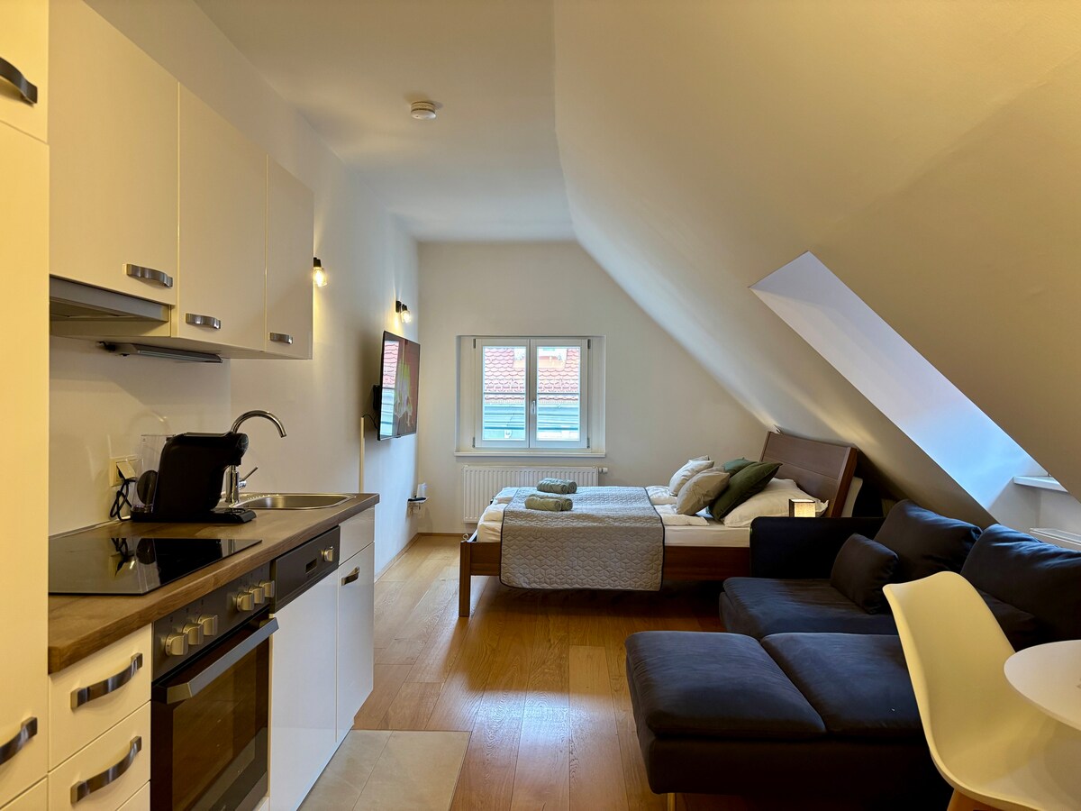 Apartamento acogedor y moderno para relajarte y también para trabajar, ¡en una ubicación urbana céntrica! Siéntete como en casa y disfruta de tu estancia en este elegante apartamento en el ático diseñado con cariño. Ubicado en un edificio antiguo remodelado, te ofrece una mezcla perfecta de comodidad y estilo moderno. El centro de la ciudad de Graz está a pocos minutos a pie. Antes de que llegues, te enviaré un enlace con más información útil.