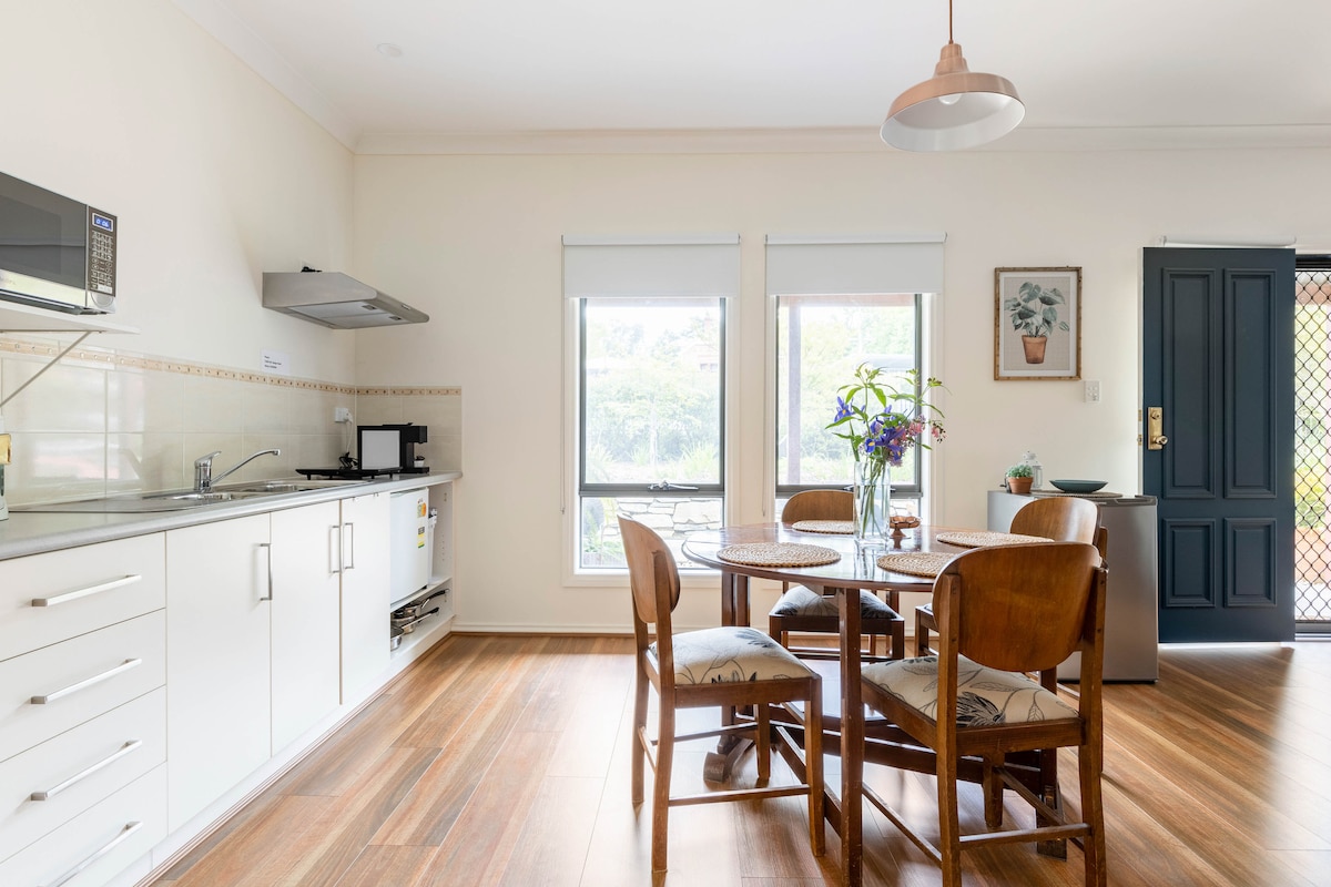 Modern country cottage apartment. A private space, for a romantic getaway. Close to walking trails /bike tracks, Heysen Trail, Mt Crawford Dressage, Mt Pleasant Show Grounds. Short walk to Birdwood shops and Motor Museum. Ideal location to explore Adelaide Hills and Barossa Valley regions. Full apartment includes one bedroom with Q Bed plus Sofa bed in the living space. Enjoy your own bathroom, kitchenette, electric BBQ Grill, air fryer, pod coffee machine and light breakfast provisions.