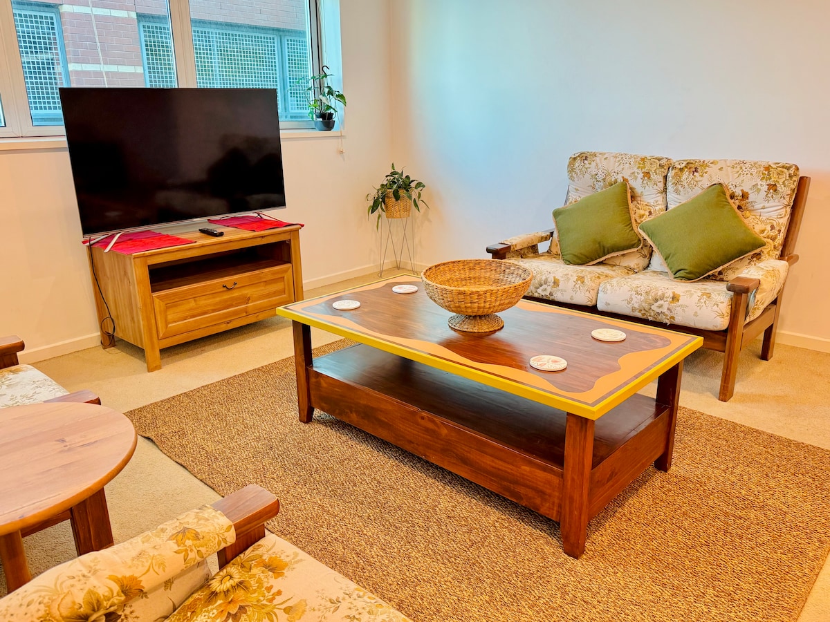 Cómodo apartamento de 2 dormitorios totalmente equipado. Ubicación central del CBD. Cama 1 con cama queen, cama2 con 2 camas individuales tamaño king y cama nido individual. Aire acondicionado R/C Lounge and Bed1. Cama 2 con ventilador y calentador de columna. Portacot previa solicitud. Sala de estar con TV, reproductor Bluray, wifi gratuito y Netflix, sofás 1 x 2 y 1 x 3 personas, escritorio de estudio. Balcón. Cocina completa y lavandería (lavadora/secadora). Estacionamiento seguro y gratuito. Apartamento con ascensor. NO HAY TARIFA POR SERVICIO PARA HUÉSPEDES POR SEPARADO POR AIRBNB. Descuentos para estadías más largas.
