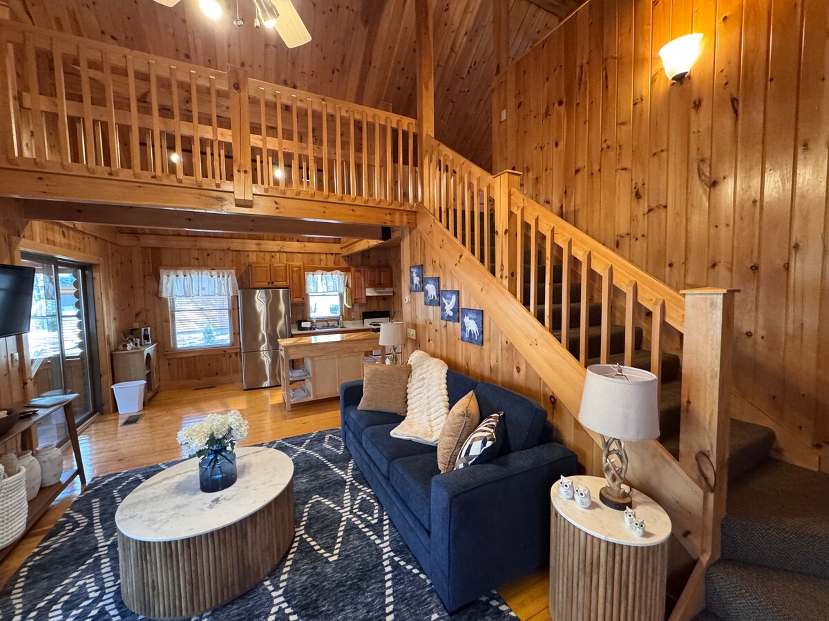 Disfruta de la máxima relajación con más de 100 pies de arena frente a la playa junto al lago, enclavada entre pinos serenos. Esta espaciosa casa en el lago cuenta con: Piso principal abierto 3 niveles (3100 pies cuadrados) para la privacidad Se admiten familias y perros ¡Jacuzzi, kayaks, playa, sala de juegos, fogata y más! Ideal para familias numerosas que quieran compartir unas vacaciones sin comprometer la privacidad. Disfruta de actividades durante todo el año y crea recuerdos duraderos. ¡Obtén un 10 % de descuento para estancias semanales o más largas!