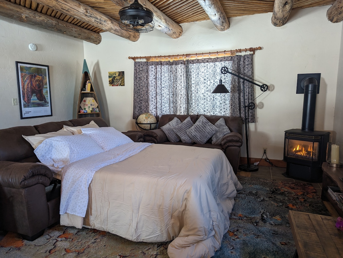 Disfruta de impresionantes amaneceres y puestas de sol en Hangin' Heart Ranch, ubicado en la tranquila campiña al oeste de Great Falls, a 10-15 minutos de la ciudad. Esta acogedora y única casa tiene capacidad para 2 adultos (*posiblemente hasta 4) y cuenta con Internet de alta velocidad, un pequeño espacio de trabajo, TV de alta definición, cocina bien equipada y lavadora/secadora de carga frontal. Lo mejor de todo es que podrás sumergirte bajo un cielo estrellado en la bañera de hidromasaje justo fuera de tu puerta. *¿Necesitas espacio para uno o dos invitados más? Háganoslo saber, es posible que podamos ofrecer un sofá cama extraíble.