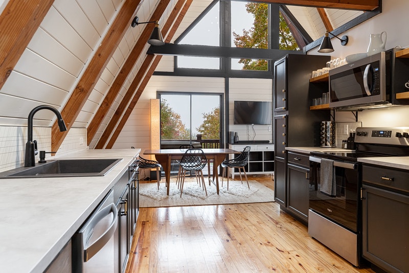 The Water Wheel es nuestro lugar para desconectar y desintoxicarnos del bullicio de la vida. Cuando no estamos aquí disfrutando de este espacio, queremos compartirlo contigo. Imagínate descansando junto a nuestra hoguera con una cerveza local o contemplando las vistas a la montaña desde el jacuzzi y luego preparando una comida increíble. Desintoxícate en nuestra sauna de cedro después de una larga caminata. O si estás explorando la zona, es el alojamiento perfecto para aventuras en las montañas o para ir a Asheville a visitar cervecerías, restaurantes o tiendas.