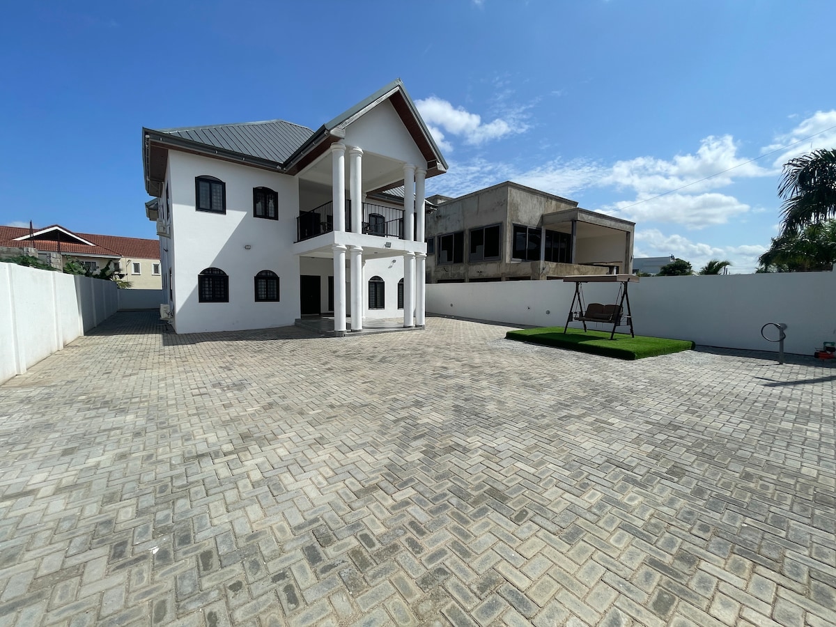 Disfruta de una experiencia enriquecedora en este lujoso alojamiento en East Airport, perfecto para familias y grupos. La casa está totalmente equipada con aire acondicionado, cocina funcional, camas supercómodas, sofá acogedor, seguridad, internet ilimitado, DSTV, sistemas de entretenimiento y un generador de respaldo de 66 kVA para tu comodidad sin fin. La ubicación está a 10 minutos en coche del aeropuerto y dentro de un radio de 15 minutos de todos los principales lugares de entretenimiento y negocios de la ciudad, como Labadi Beach, East Legon, Accra Mall, restaurantes populares y vida nocturna. Bienvenido