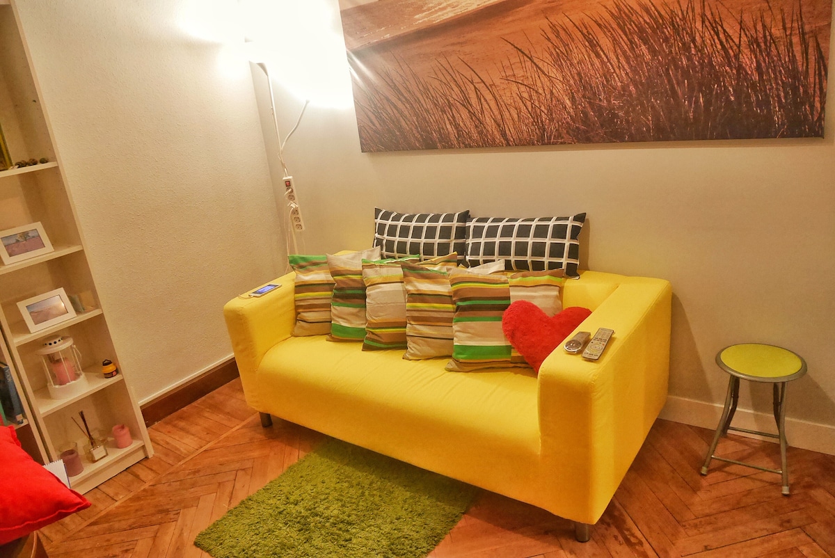 Coqueto apartamento situado en un barrio muy tranquilo a 2 pasos del Casco Viejo. El apartamento cuenta con 2 habitaciones con cama de matrimonio, una con ventana a la calle y la otra con ventanas a patio. Una salita con cocina americana y un balconcito. El cuarto de baño es amplio y el inhodoro está aparte. Nos hemos desvivido por presentaros un refugio luminoso y acogedor, arty y con encanto, apto para familias con niños, parejas y amigos. Aparcamiento gratuito fuera de las instalaciones.