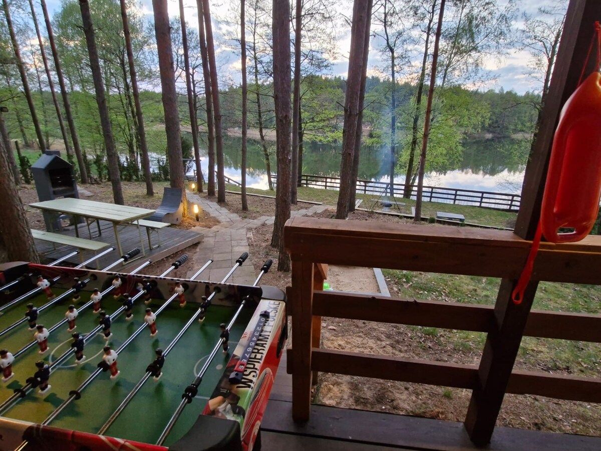 Le invitamos a nuestra casa de madera en una isla rodeada de un gran estanque y una hermosa vegetación. La casa es ideal para aquellos que quieren escapar de la ciudad y trasladarse a un lugar donde reina la paz. Los alrededores de la isla invitan a pasear, y los campos y bosques cercanos a pasear en bicicleta. Después de un día activo, es hora de relajarse y tomar un café en nuestra terraza sobre el agua, y al final del día, disfrutar juntos de una hoguera.