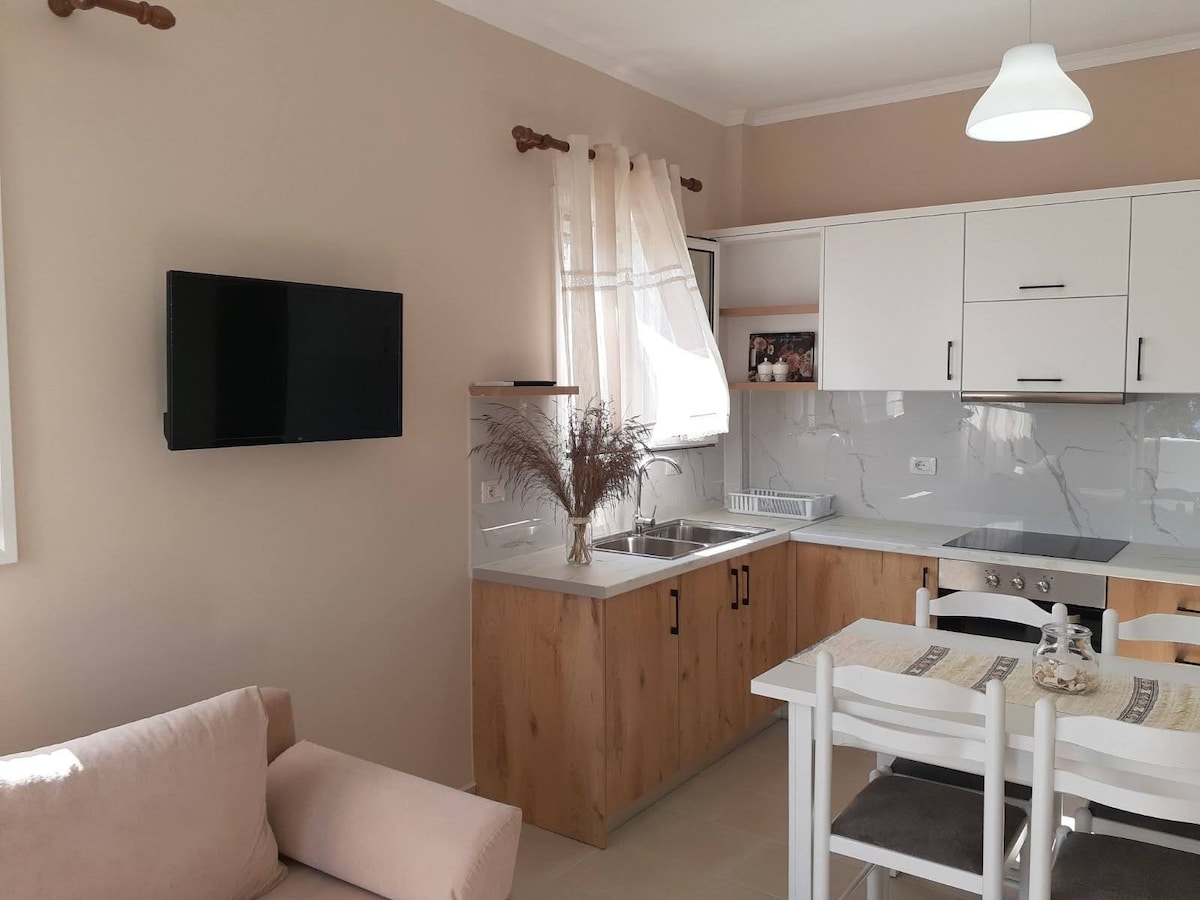 La propiedad se encuentra en un pequeño complejo de apartamentos en el hermoso pueblo de Dhermi. Es un espacio tranquilo y familiar que te hará sentir cómodo y relajado. El apartamento está decorado con amor y buen gusto, inspirado en la arquitectura local. Tiene un balcón con vistas al mar Jónico y a la montaña Llogara. Totalmente amueblado, el departamento incluye una sala de estar, cocina, baño y amplio balcón. ¡Esperamos recibirte!