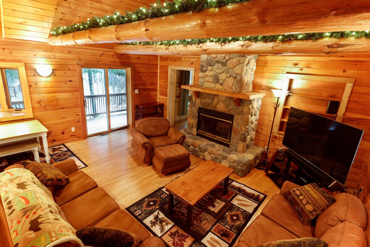 Desconecta de la rutina en este alojamiento único y relajante en el río Silver. Una acogedora cabaña de troncos bellamente hecha a mano por el propio propietario. Hay una cama tamaño queen junto con un futón que se despliega en una cama individual y un sofá convertible que también se pliega en una cama individual. ¡Disfruta de motos de nieve, raquetas de nieve, esquí, 4 ruedas, senderismo, kayak, paseos en bote, pesca, caza y mucho más!