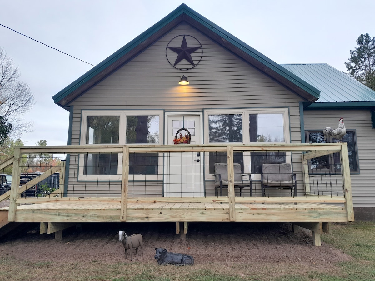 Pricing is per bedroom; $144/night for 1 bedroom accommodating 1-2 guests. Additional $87/night for a second bedroom for 3-4 guests in total. Located on a dead-end gravel road, 1.5 miles to hard surface road. There is a house behind the cottage where one person lives. Construction completed in 2020, has a deck, a 2-acre pond, 15 acres cleared, woods to wander in, walking distance to Otter River, 19 miles to Houghton, 13 miles to Baraga on Lake Superior.