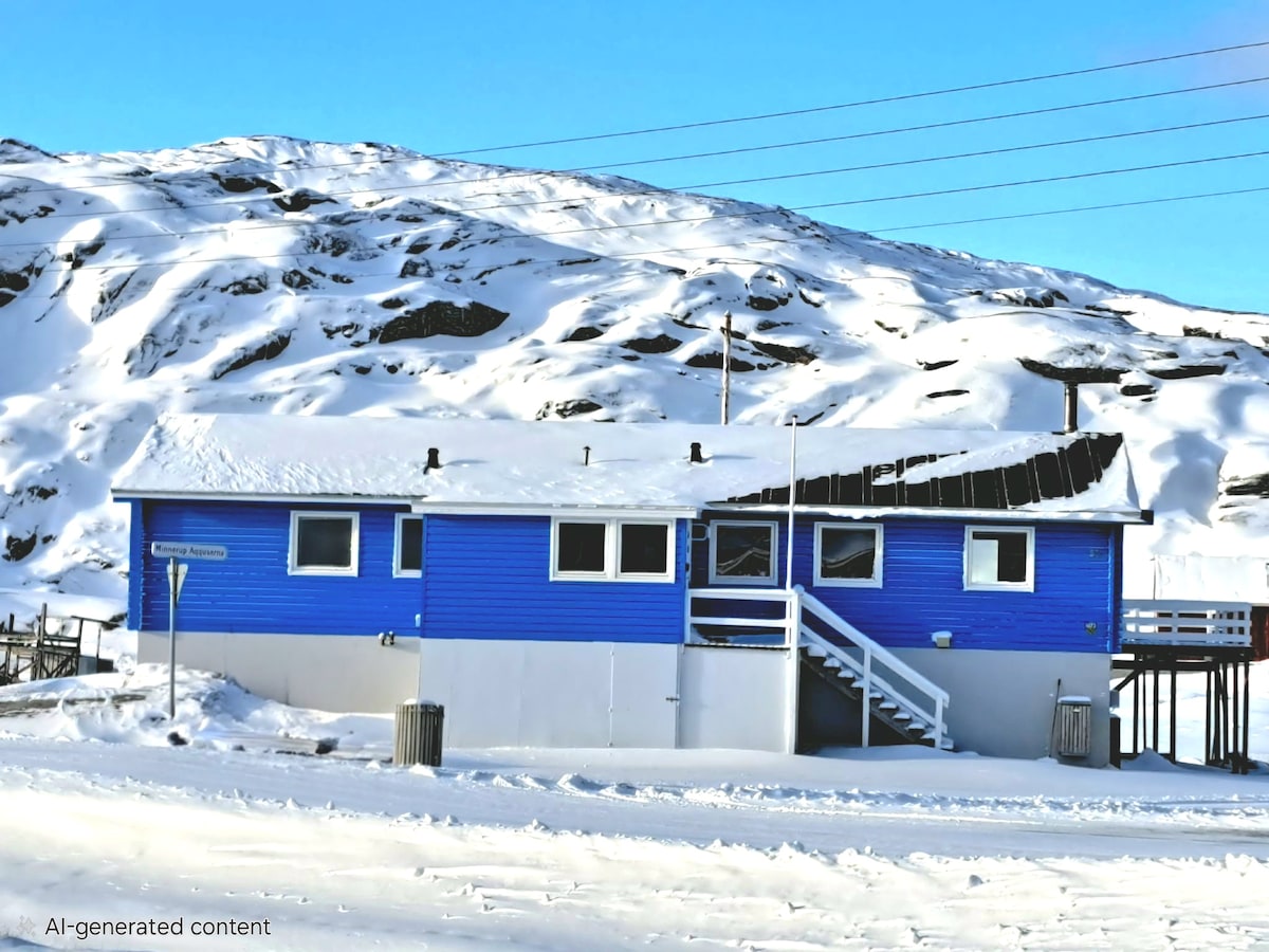 Amplia villa para familias y grupos de viajeros. Ubicado justo entre la costa de la bahía Disco, las rutas de senderismo y el área de trineo para perros. Disfruta de la vista de la montaña, el océano y los icebergs desde nuestra casa La casa puede alojar a 7 personas Dormitorio 1: Cama individual Dormitorio 2: espacioso con cama matrimonial Dormitorios 3 y 4: camas individuales. O podemos organizar las camas a tu solicitud. La casa es un gran lugar para disfrutar de las vacaciones, la exploración como punto de partida para expediciones, kayak y senderismo.