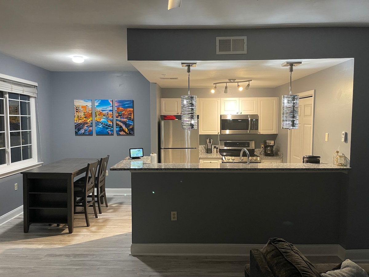 Cerca de GSP, acogedora escapada de lujo con cama tamaño king para 7 personas