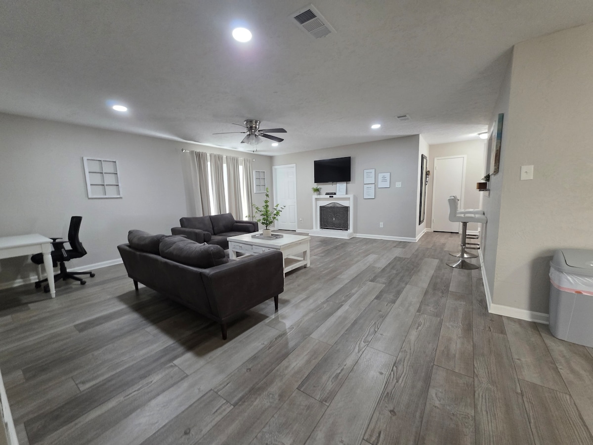 Quédate en Modern Comfort, una casa de 3 dormitorios y 2 baños bellamente renovada en Longview, Texas. Este espacio familiar tiene un diseño abierto, mucha luz natural y una acogedora chimenea eléctrica. Disfruta de un patio trasero privado, completamente cercado y con un patio amueblado y totalmente cubierto en una tranquila calle de un solo sentido, a poca distancia de parques y campos de juego. Modern Comfort ofrece una estadía relajante y cómoda a pocos minutos del centro de la ciudad, restaurantes y tiendas.
