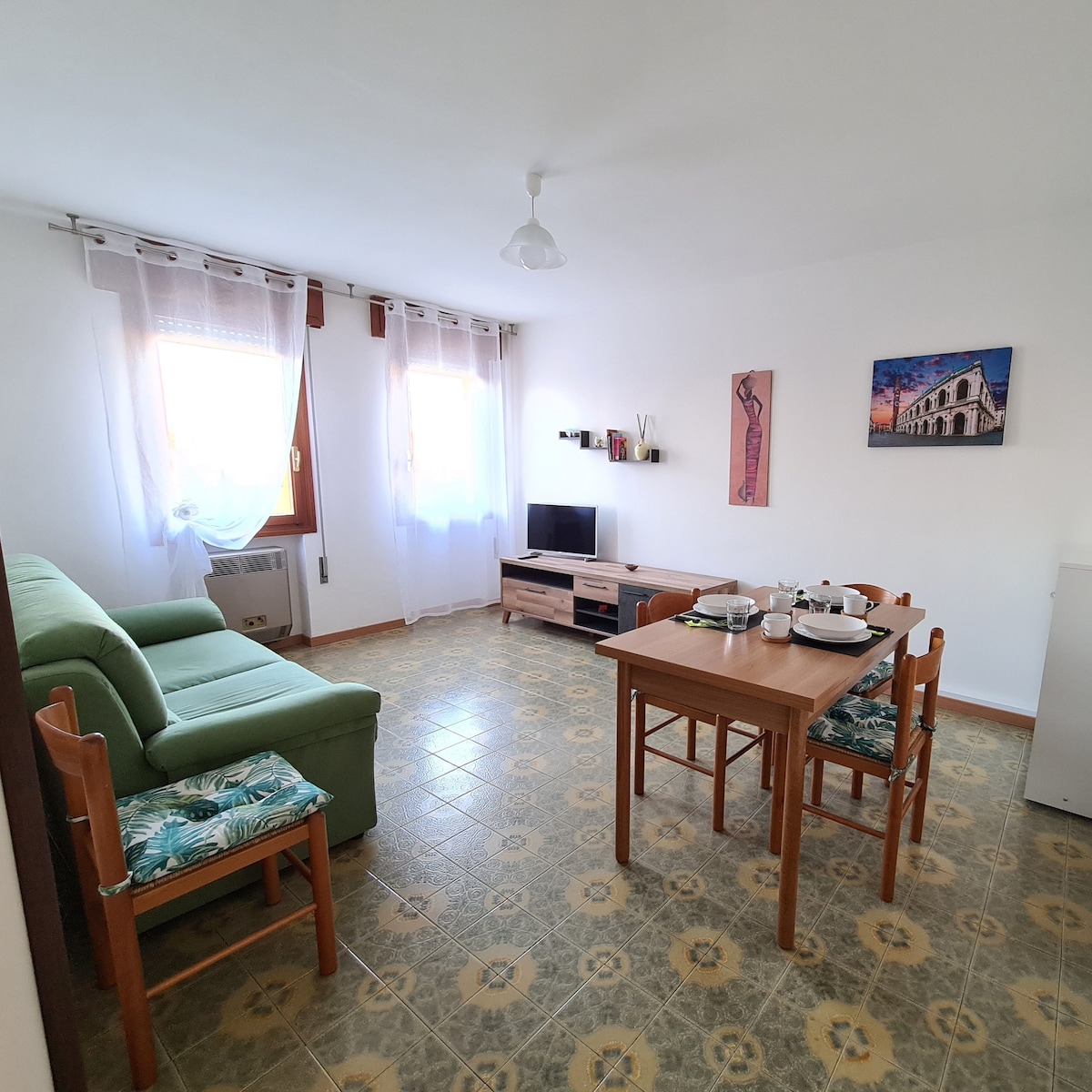 Mini apartamento luminoso en el centro del pueblo, perfecto para dos personas y con la posibilidad de alojar a una tercera en una cama plegable. Situado en una posición estratégica a pocos pasos del peaje de la autopista A4 (salida de Grisignano di Zocco) y de una parada de autobús que puede llevar en unos 20 minutos a los centros de Padua y Vicenza. La zona cuenta con varios servicios a los que se puede llegar a pie: pizzería para llevar, estanco, quiosco, minimercado, bar, restaurante y farmacia.