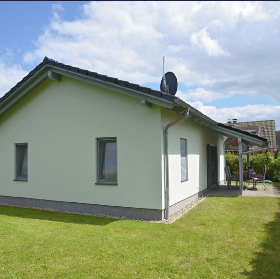 Ofrecemos un moderno bungalow de vacaciones en Grömitz. Consta de un dormitorio separado con una cama doble, una gran sala de estar con comedor. Este tiene un sofá nuevo y cómodo con una gran función para dormir. Además, está el baño con ducha e inodoro. ¡El bungalow tiene una entrada independiente y una terraza con muebles de terraza y tumbonas! El apartamento tiene 47 m² y es adecuado para 1 a 3 personas como máximo.