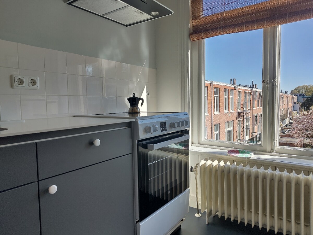 Disfruta de una experiencia bonita y cómoda en este lugar céntrico. Apartamento amueblado con una o dos personas en un barrio popular. El departamento se encuentra en el tercer piso de la casa de un antiguo caballero. Compartes el pasillo con la otra asistencia. El baño tiene azulejos con marmer y hay una sauna privada. Tienes 2 terrazas en la azotea disponibles con sol todo el día. Sala con cocina abierta y sofá de esquina. Tienes que pagar el estacionamiento tú mismo.