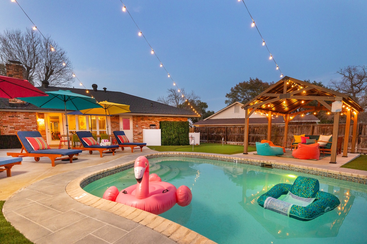 Set within the exclusive Granada Hills Neighborhood, Casa Del Rey is a hidden gem resting on a private 1-acre estate. This modern retreat boasts 5 bedrooms accommodating up to 17 guests—perfect for large groups and family gatherings. Exciting outdoor amenities include a pool, hot tub, and an outdoor movie theater. Inside, we have a fully equipped kitchen, upscale furnishings, and a game room complete with a pool table and poker set, ensuring the most memorable and comfortable getaway in Austin.