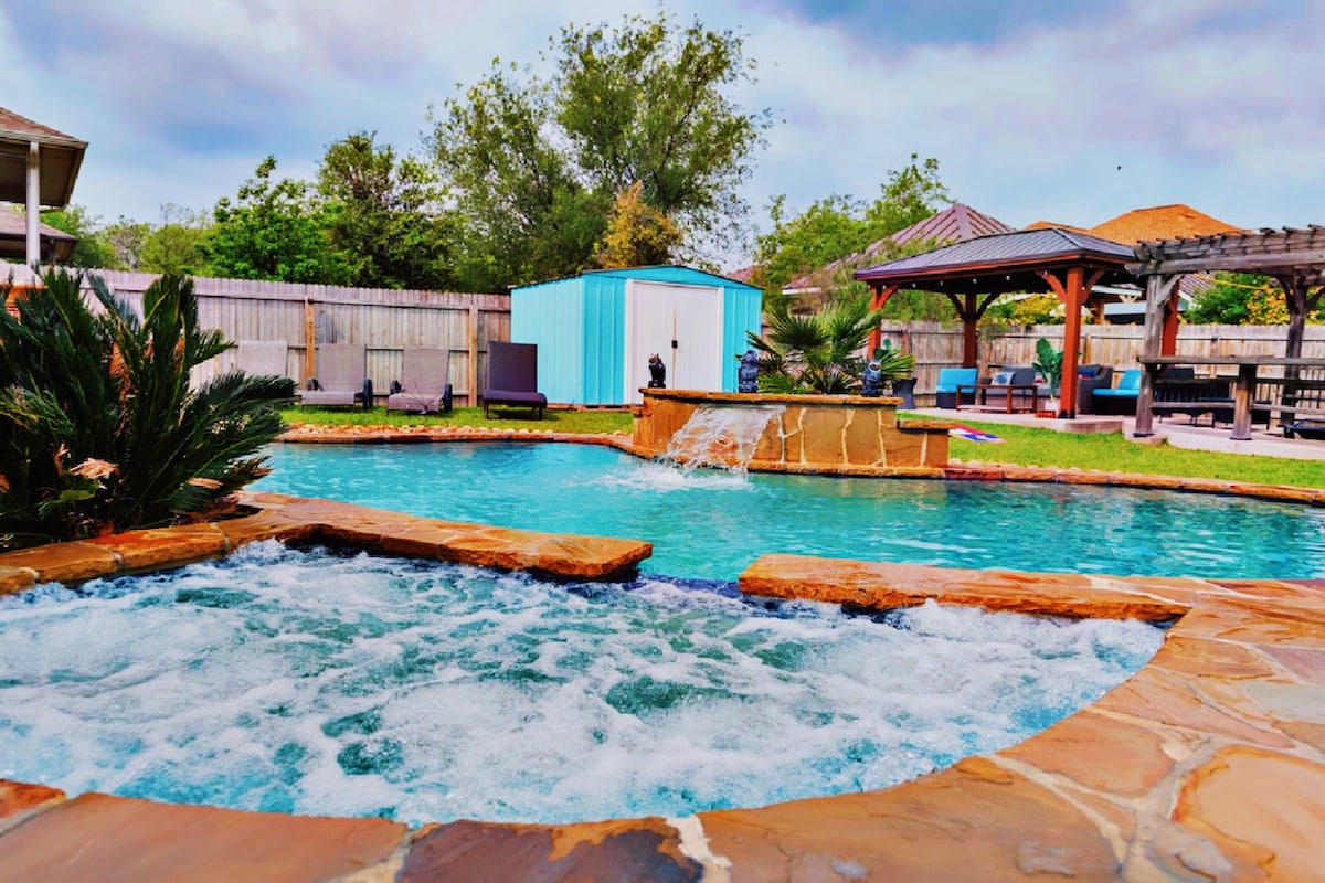 ¡Mucho entretenimiento interior y exterior para toda la familia! ¡La sala de cine es ideal para la noche de cine, karaoke y juegos! Nuestra espaciosa casa tiene una sala de cine con pantalla de proyector de 120 pulgadas, Xbox Series S, PlayStation 5, karaoke y sonido envolvente Dolby Atmos. ¡En el exterior hay una chimenea de leña y una chimenea de propano, y una piscina climatizada en el suelo! La piscina tiene 20x10 y 5 pies de profundidad. Ofrecemos un montón de asientos para acomodar a un grupo grande. El Álamo 5 millas, Riverwalk 4 millas, Alamodome 6 millas, Convention Ctr 5,5 millas