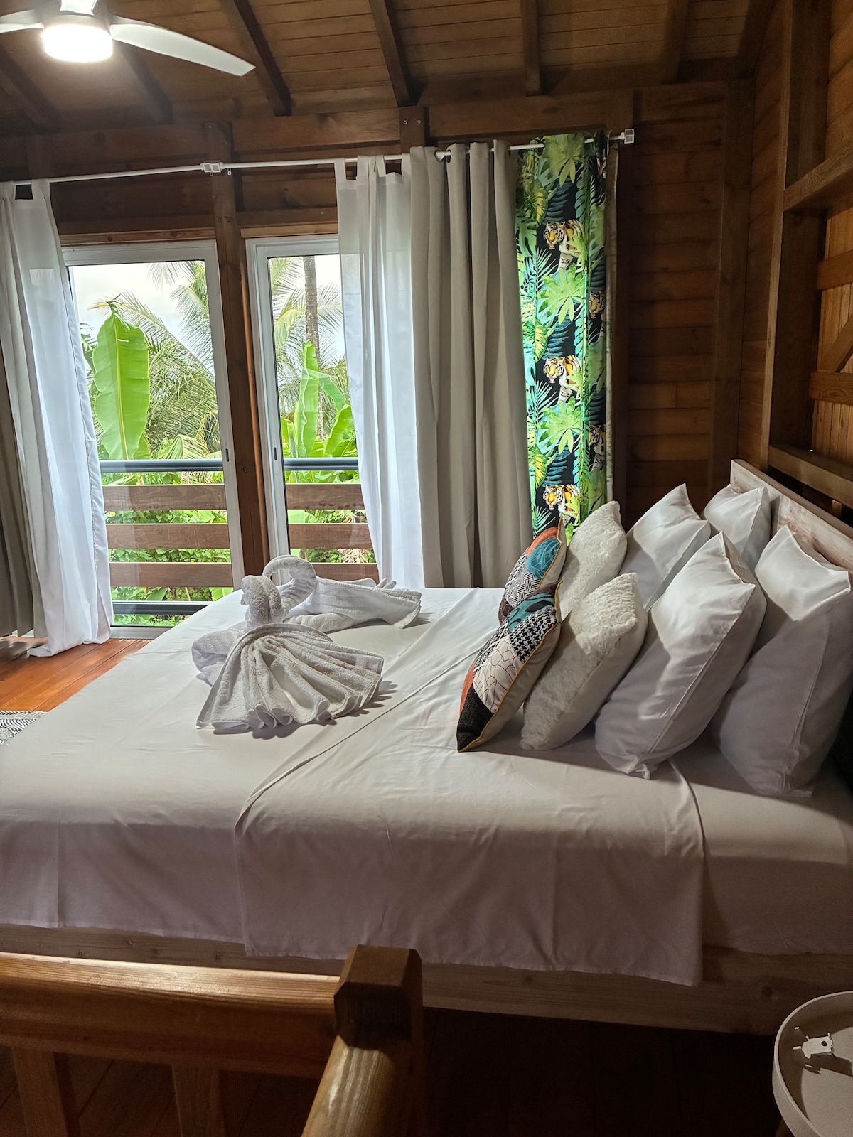 Ubicado en un entorno de vegetación tropical, La Palmeraie du Carbet es un magnífico bungalow criollo de madera de dos niveles, con vistas al mar. Situado a 2-3 minutos de la majestuosa 3ª Cascada del Carbet, los ríos de Routhier y Fond Cacao, este alojamiento es un punto de partida ideal para explorar el sur de Basse-Terre. Paisible seduce por su ambiente natural, suave y exótico. La Palmeraie du Carbet es un refugio privilegiado entre el mar, la montaña y el bosque. Ideal para recargar las pilas.