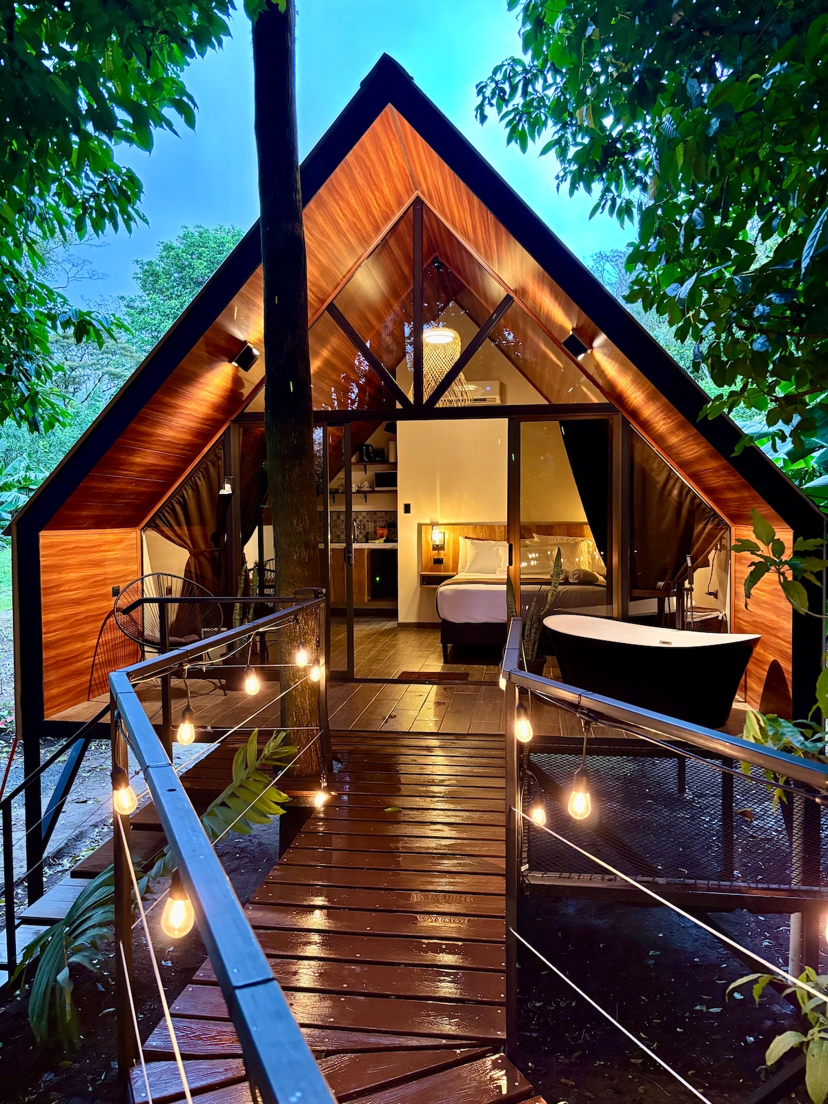 Bio Hábitat Monteverde te invita a vivir una experiencia única rodeada de bosque primario. Desde el balcón observa animales y disfruta del cielo estrellado en la Net. Relájate en nuestro jacuzzi de cristal con aguas de sal, mientras contemplas atardeceres inolvidables sobre la península de Nicoya. Un rincón exclusivo donde naturaleza, comodidad y bienestar se unen para regalarte un verdadero paraíso en Monteverde.