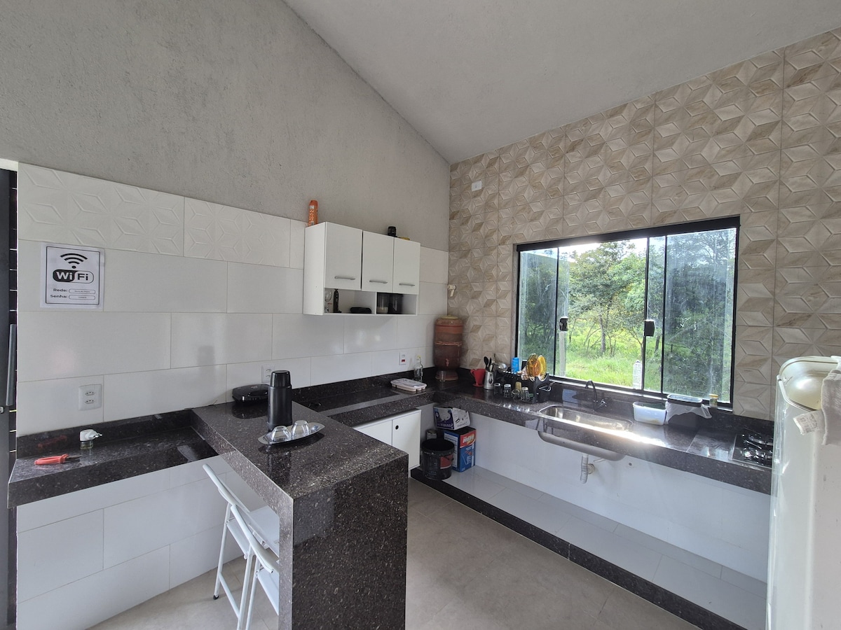Casa ubicada en una zona rural, entre el centro de Capitólio y Escarpas do Lago. Un alojamiento ideal para quienes buscan una experiencia bucólica, relajante y con contacto directo con el campo. Residencia familiar, cuenta con seguridad y espacio privado. Suite 1 - 1 cama doble Suite 2 - 1 cama doble + 1 individual Sala: 1 TV, 1 ventilador, 1 sofá cama Cocina: 1 estufa, refrigerador y utensilios (La casa tiene señal WI-FI en todas partes)