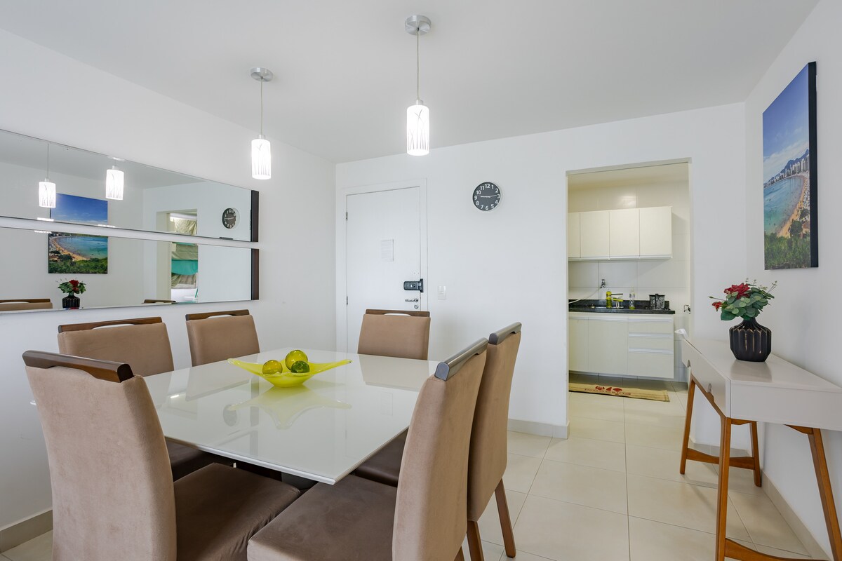 Apartamento de dos dormitorios (01 suite) frente a la hermosa playa de Peracanga, con decoración moderna y acogedora. Edificio muy bien ubicado, balcón con vista al mar en concepto abierto con comedor y sala de estar, cerca de todo lo que necesitas. Tres playas paradisíacas (Guaibura, Peracanga y Bacutia) están tan cerca que ni siquiera tendrás que sacar el coche del garaje: ¡ubicación privilegiada! Los ambientes están totalmente equipados para su comodidad, con WiFi en todas las habitaciones.